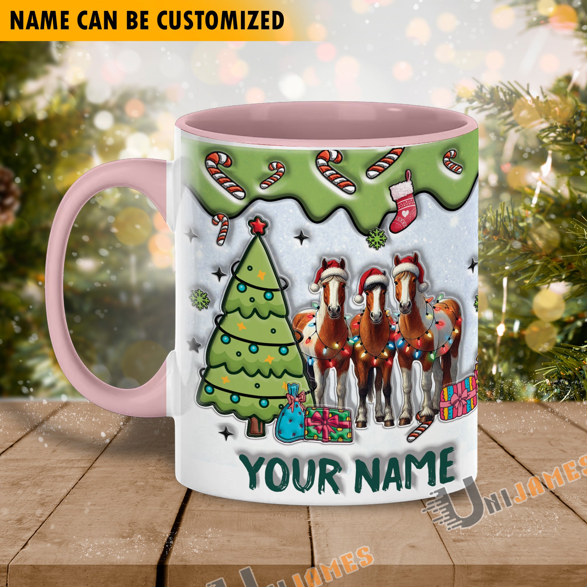 Uni Horse Christmas Personalized Name Two Tone Mug
