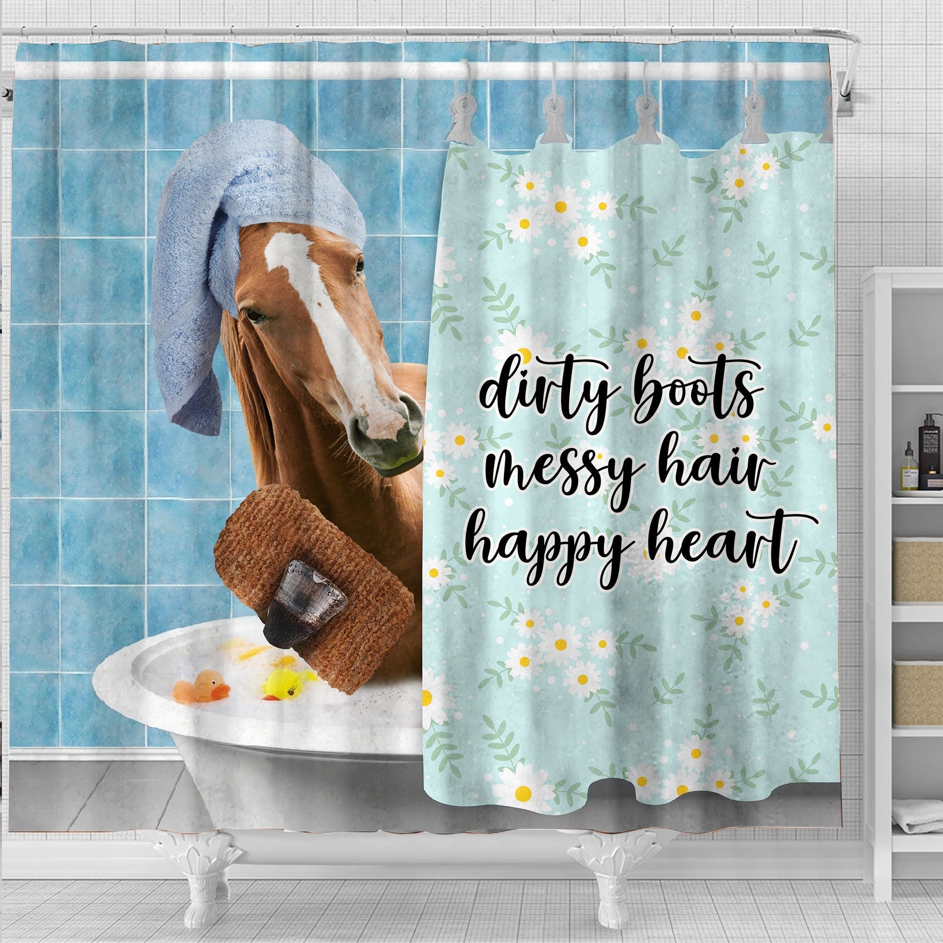 Uni Horse Dirty Boots, Messy Hair, Happy Heart 3D Shower Curtain