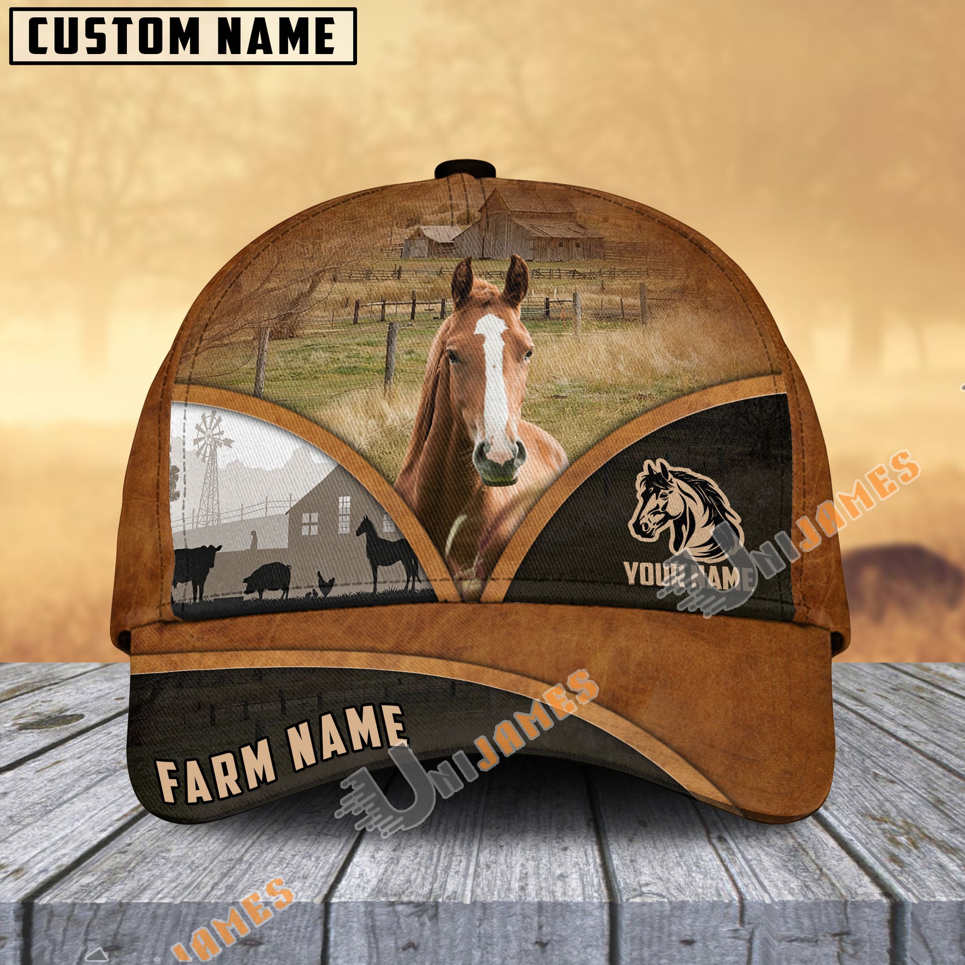 Uni Horse Farm Country Customized Name Brown Leather Pattern Cap