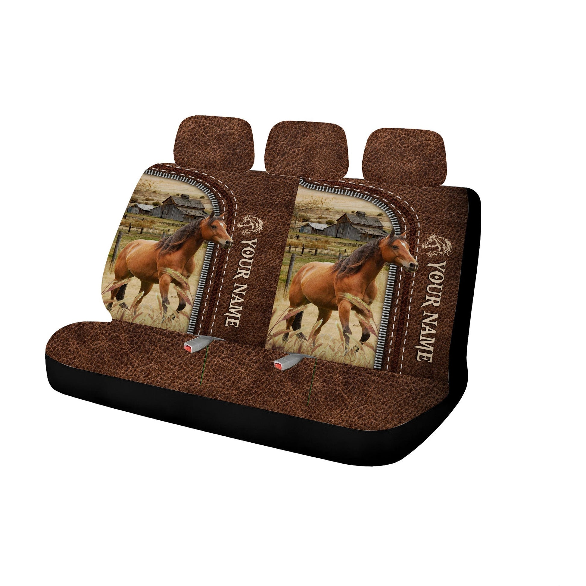 Uni Horse Personalized Name Leather Pattern Car Seat Covers Universal Fit (2Pcs)