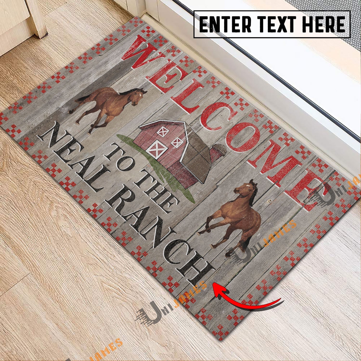 Uni Horse Welcome To The Farmhouse Custom Name Doormat