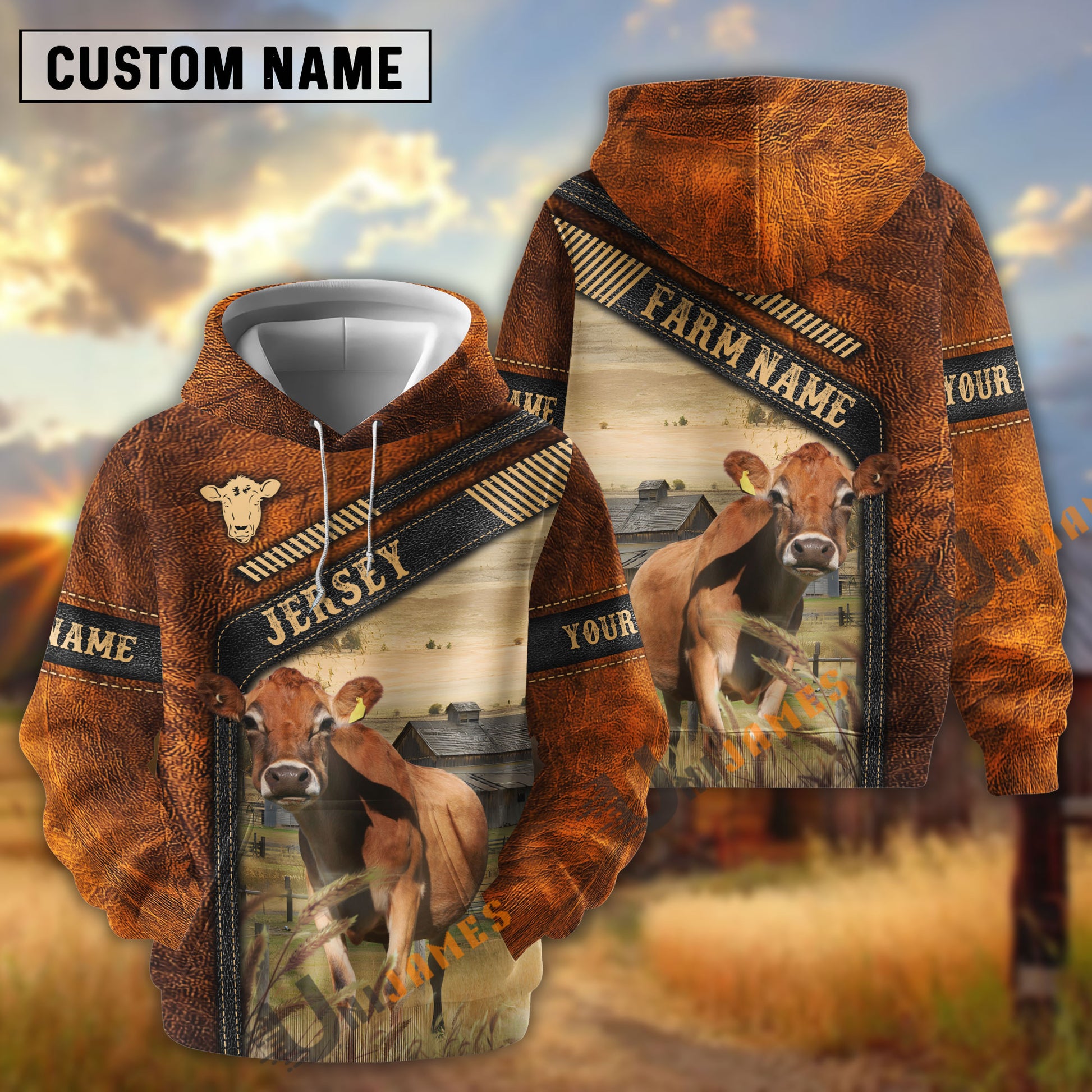Uni Jersey Dark Leather Pattern Personalized Name and Farm Name Color Mixed 3D Hoodie
