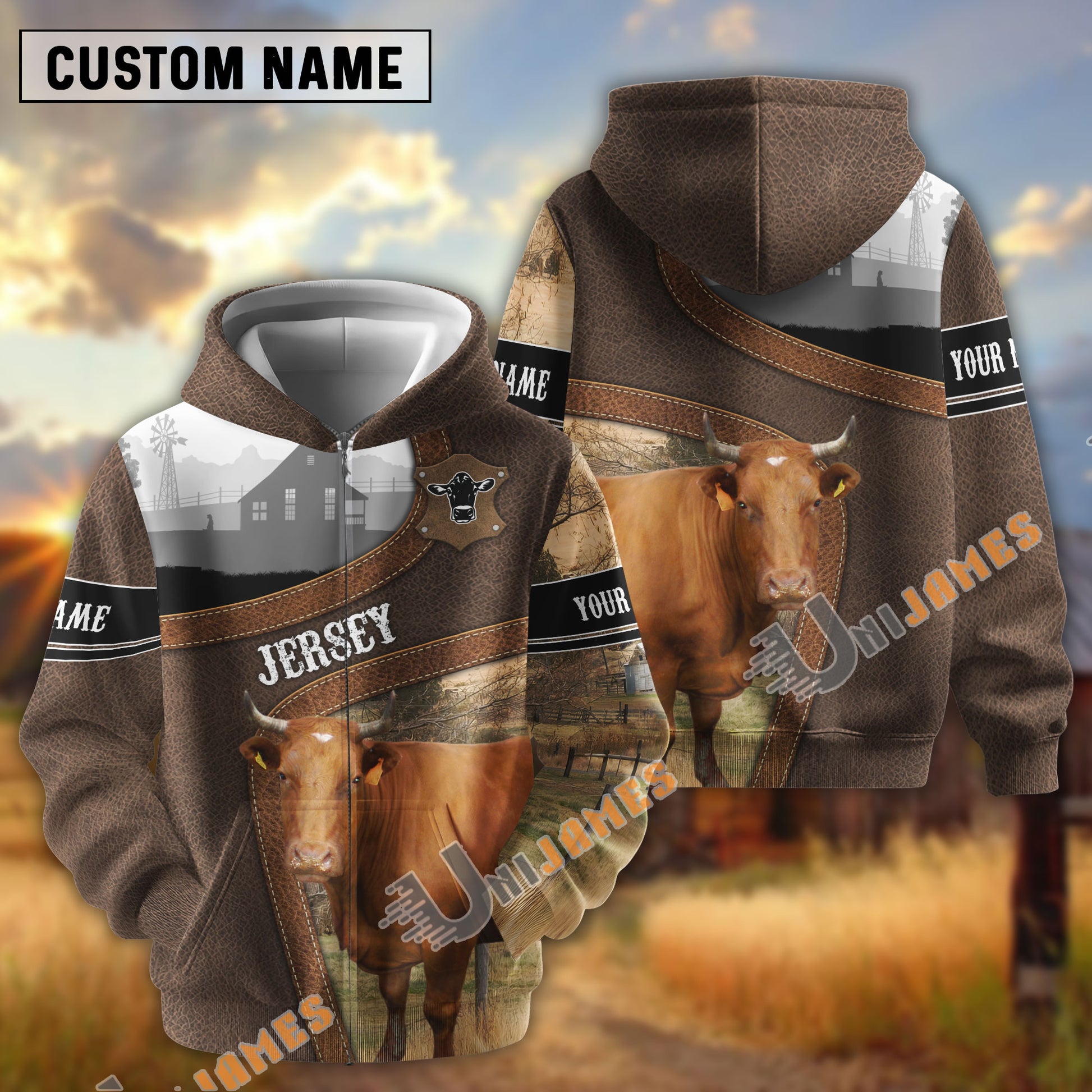 Uni Jersey Light Leather Pattern Personalized Name and Farm Name Color Mixed 3D Hoodie
