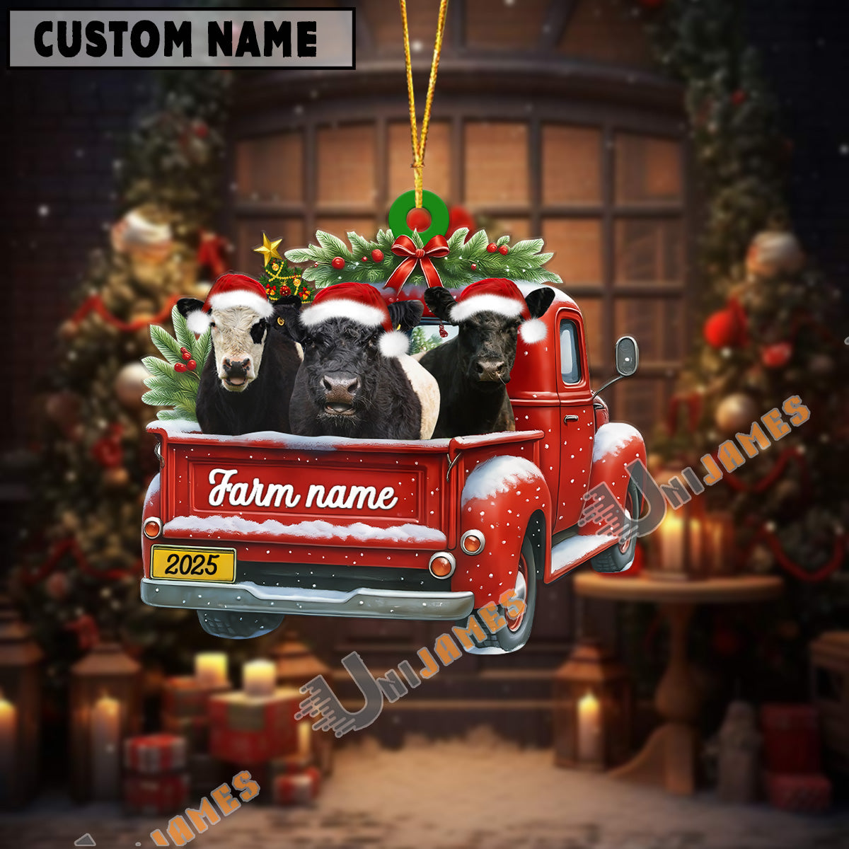 Uni Personalized Belted Galloway Christmas Farm Truck Custom Shape Acrylic Ornament