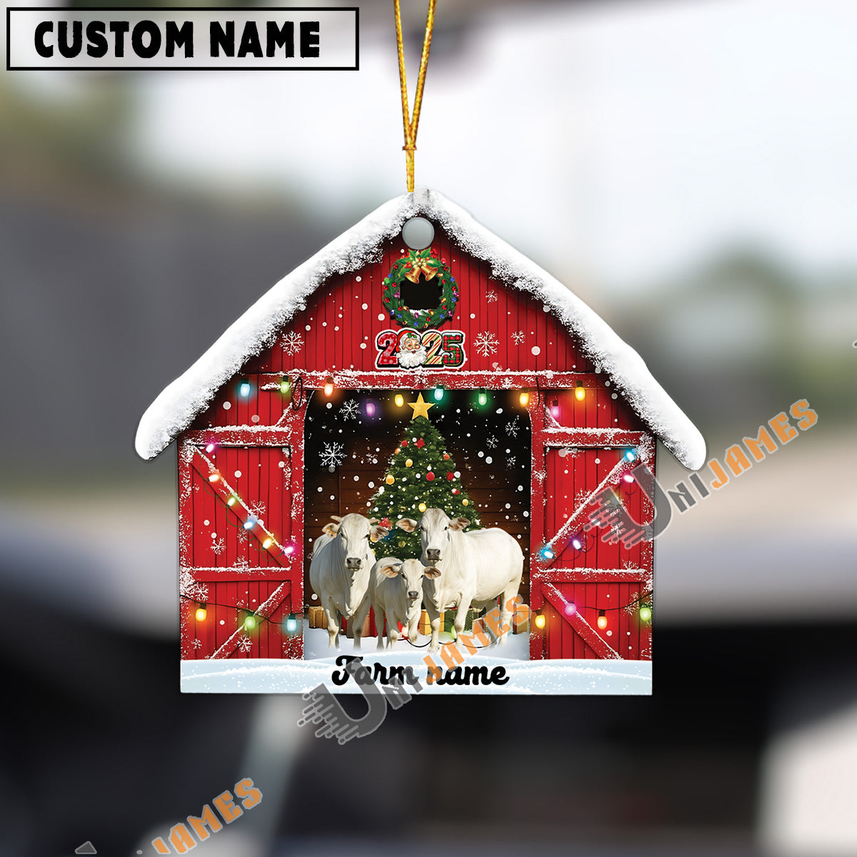 Uni Personalized Brahman Christmas Barn Ornament – Custom Farm Name 2025