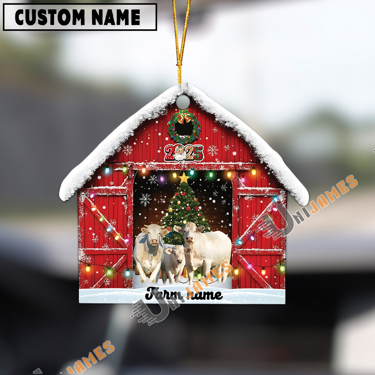 Uni Personalized Charolais Christmas Barn Ornament – Custom Farm Name 2025
