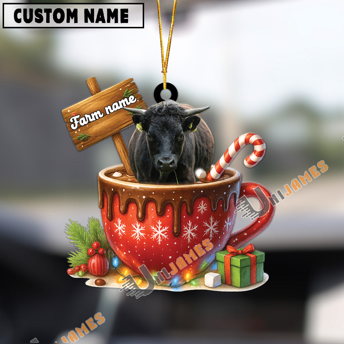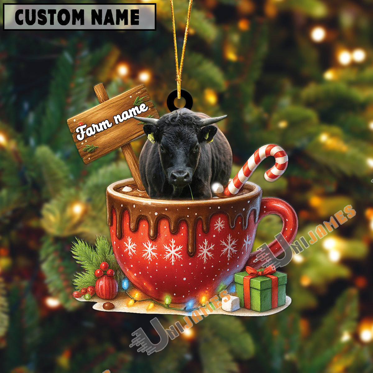 Uni Personalized Dexter Moo-ry Christmas Cocoa Mug Acrylic Ornament