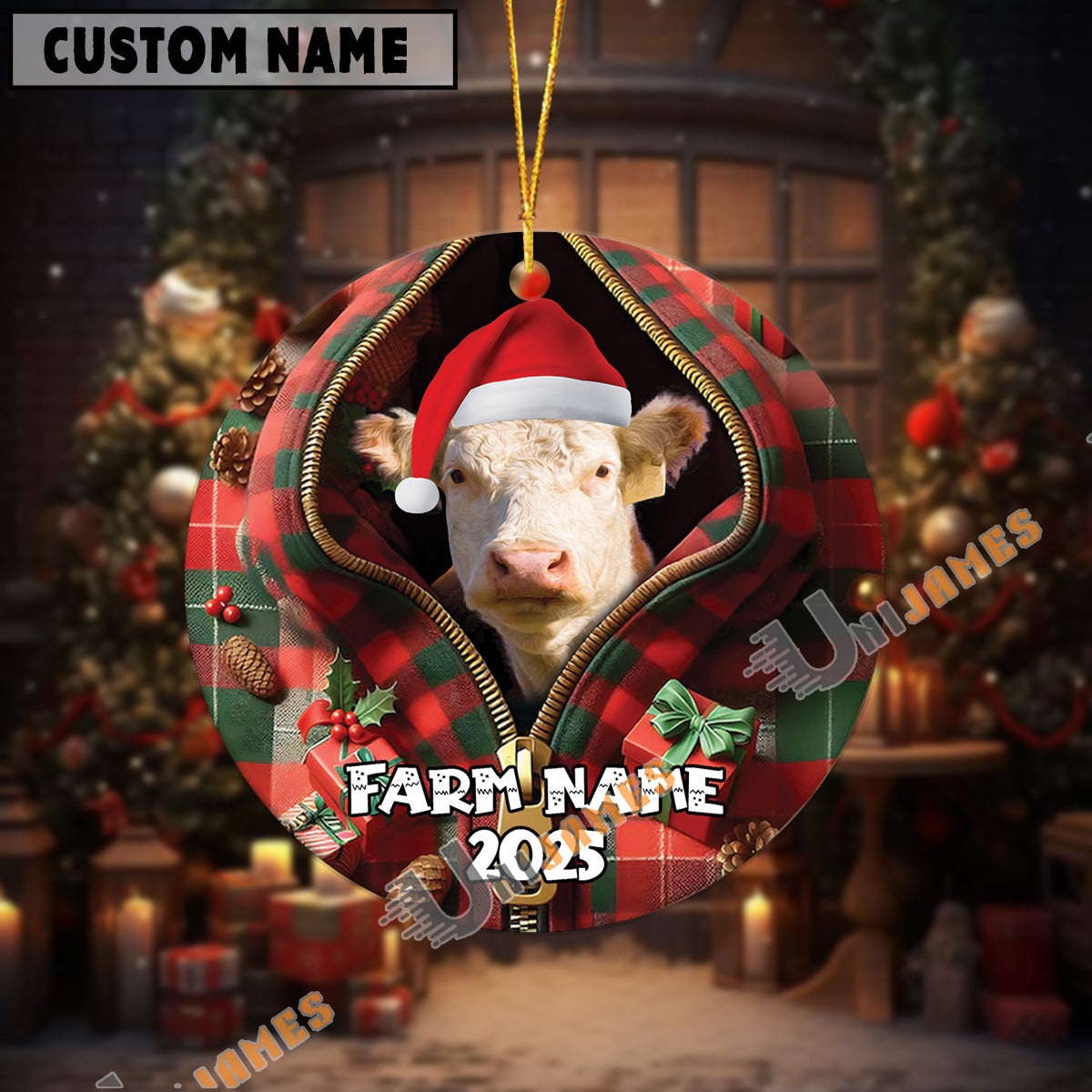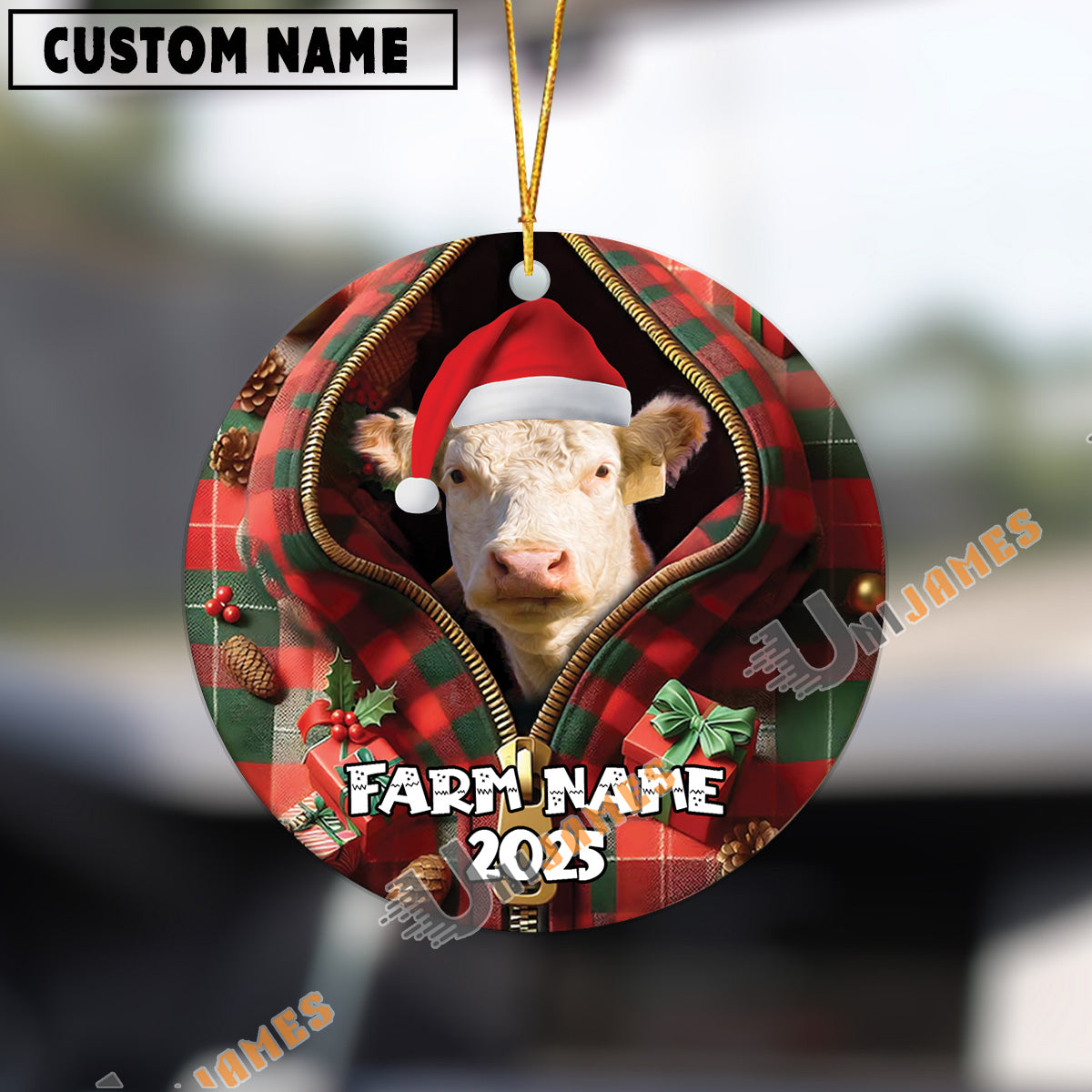 Uni Personalized Farm Name Merry Hereford Farm Plaid Ornament