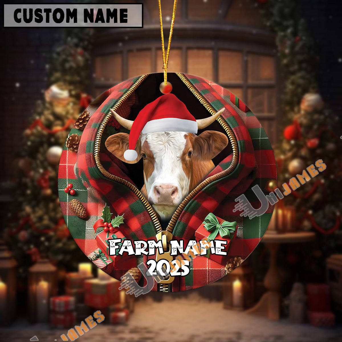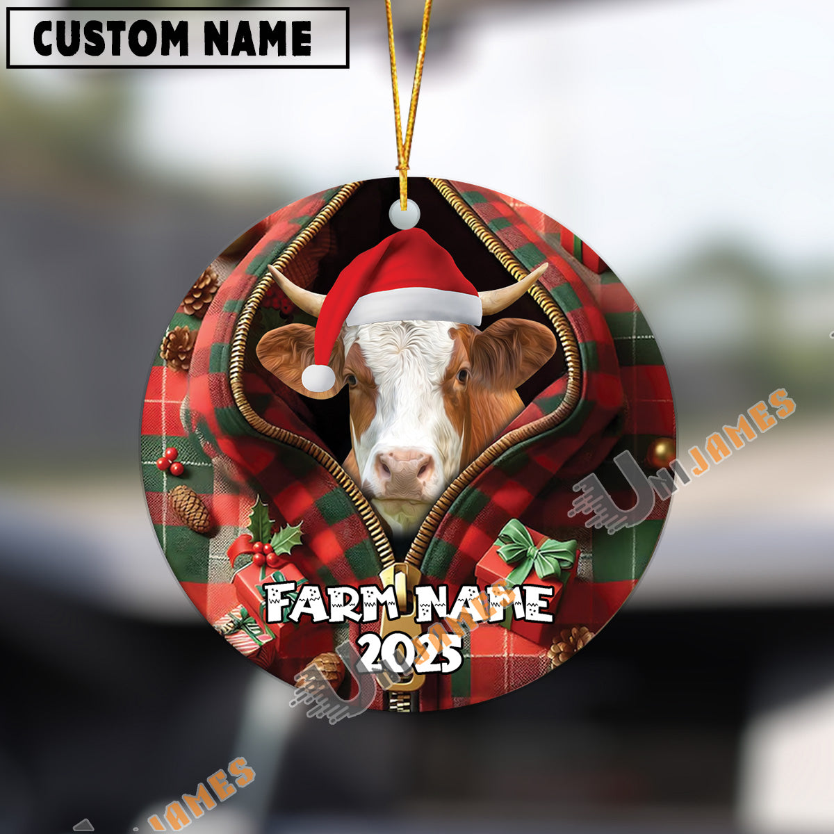 Uni Personalized Farm Name Merry Simmental Farm Plaid Ornament