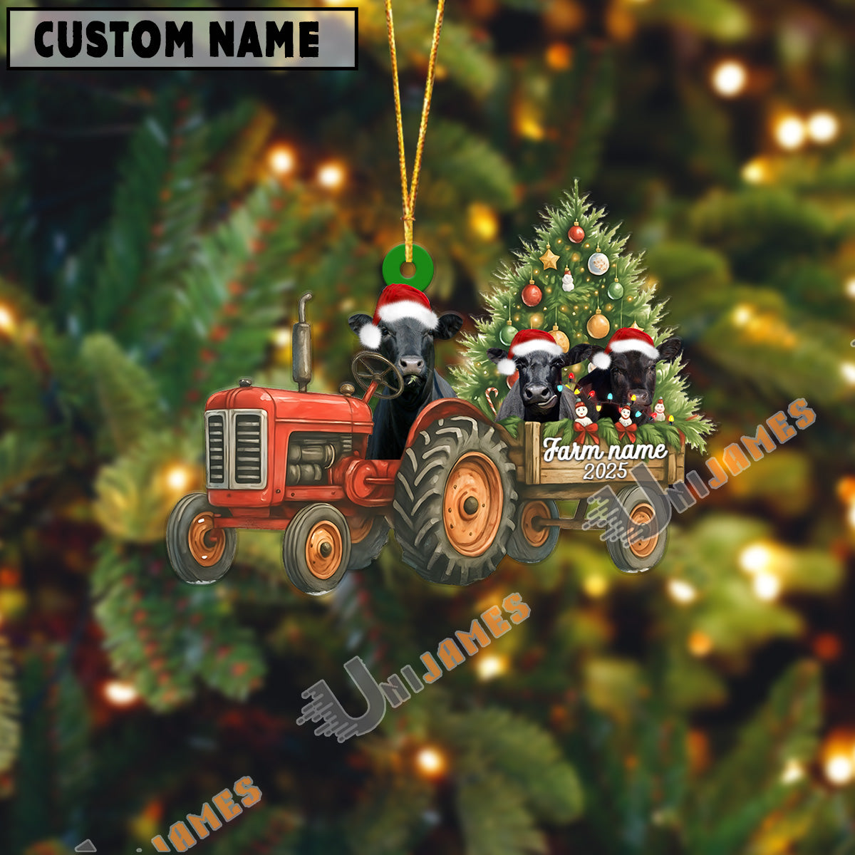 Uni Personalized Farm Tractor Christmas Ornament with Black Angus & Tree Acrylic Ornament