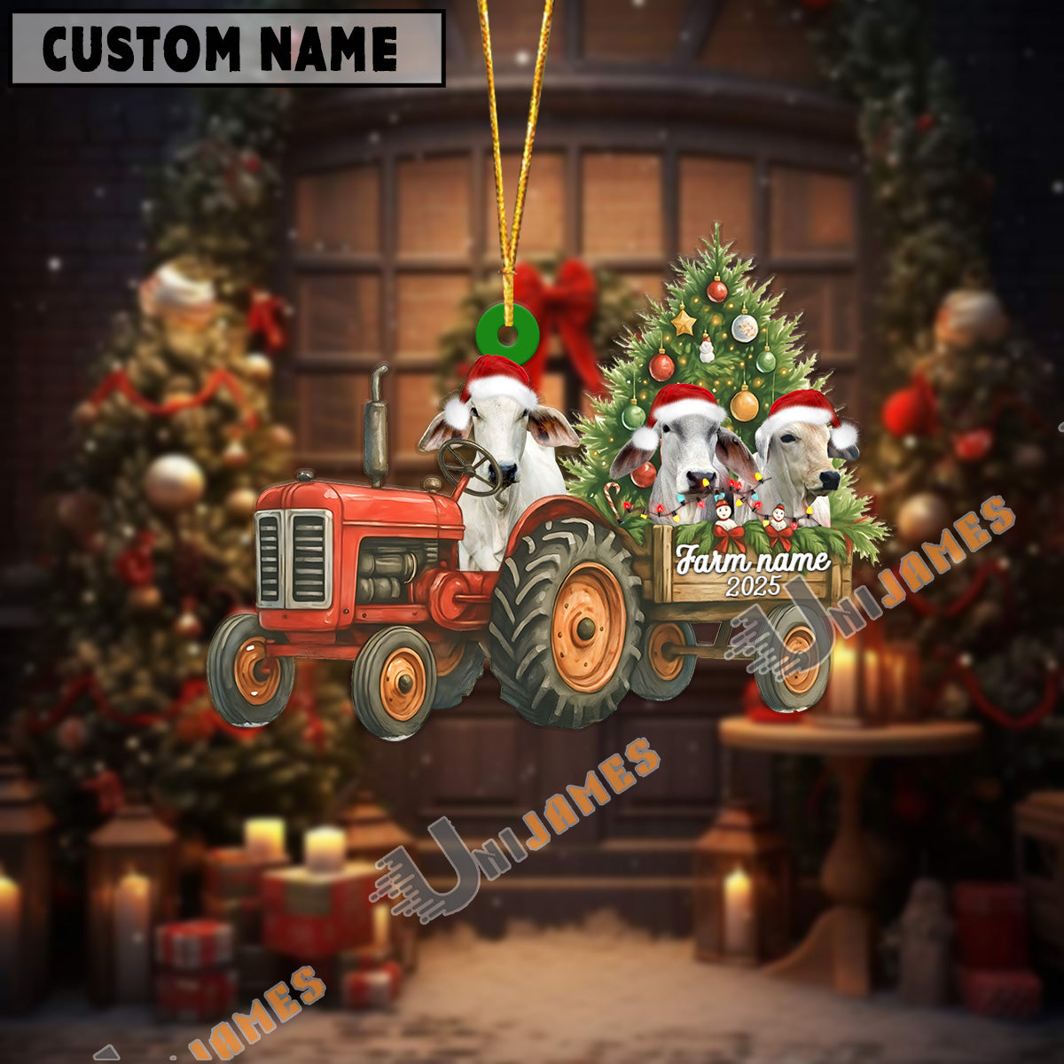 Uni Personalized Farm Tractor Christmas Ornament with Brahman & Tree Acrylic Ornament