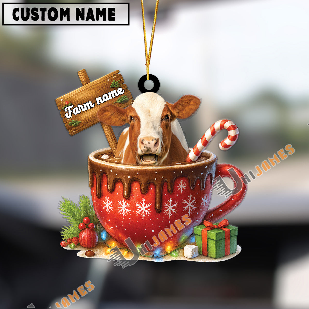 Uni Personalized Hereford Moo-ry Christmas Cocoa Mug Acrylic Ornament