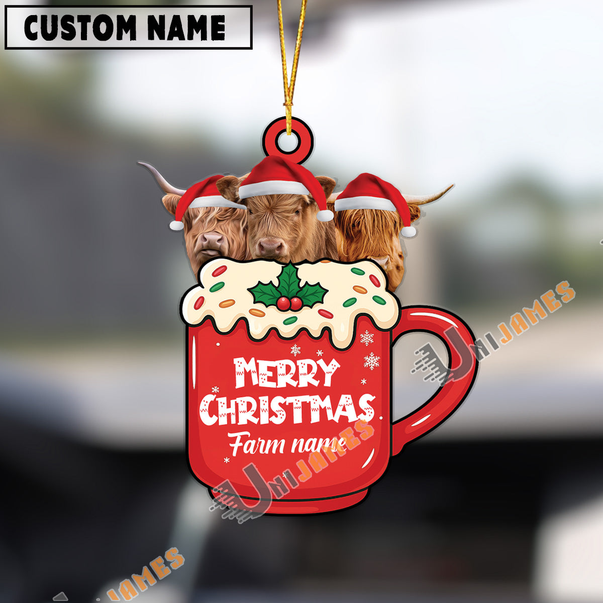 Uni Personalized Highland Merry Christmas Farm Mug Ornament