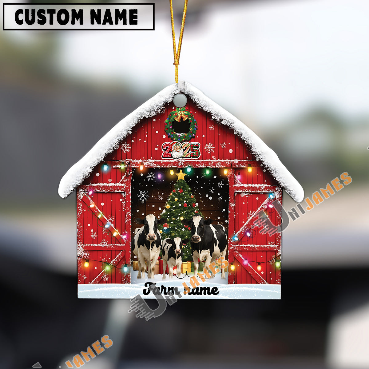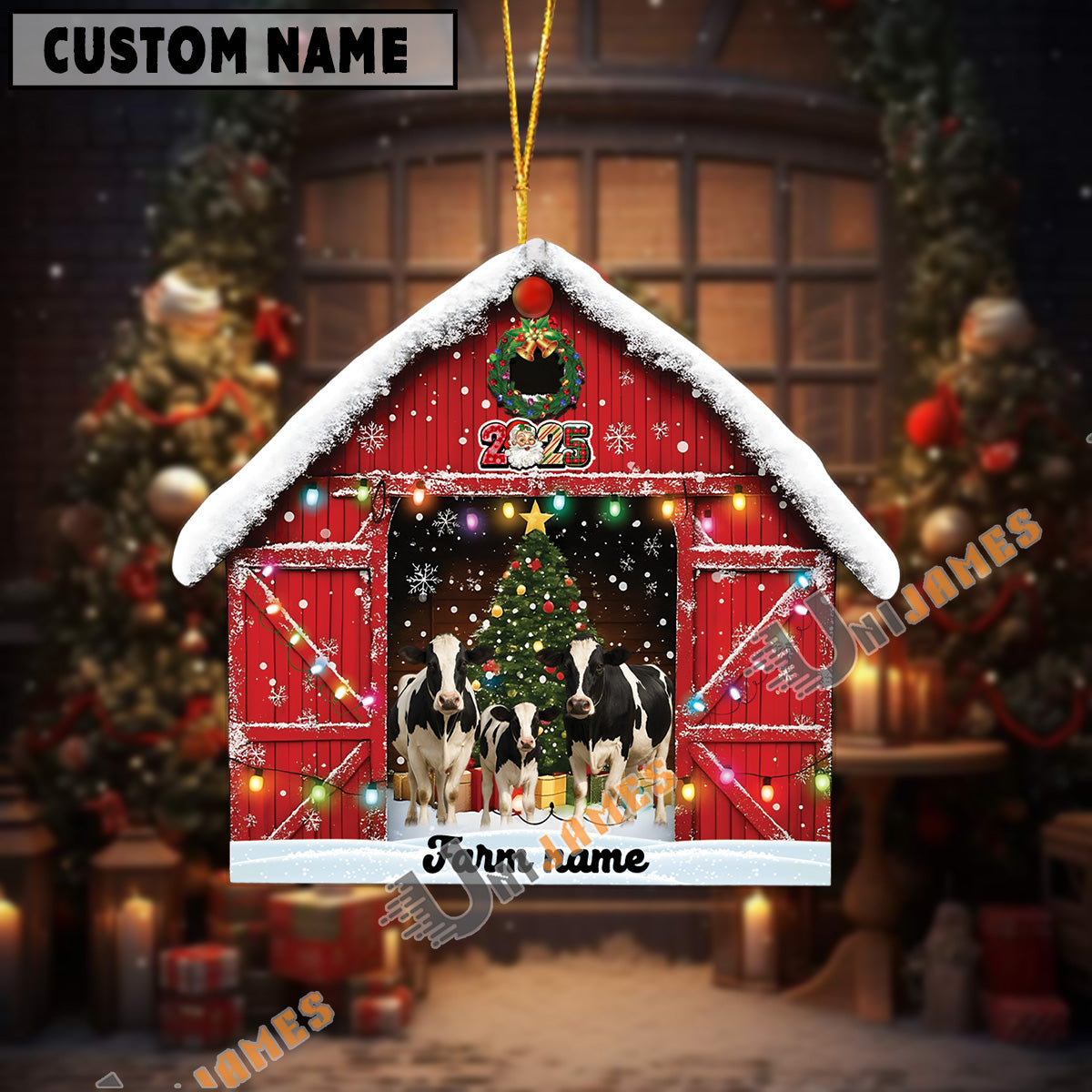 Uni Personalized Holstein Christmas Barn Ornament – Custom Farm Name 2025