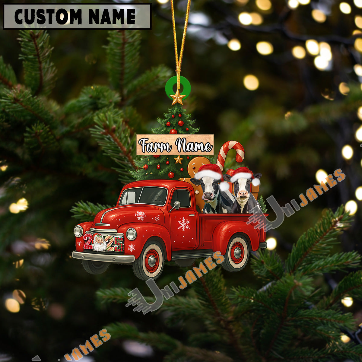 Uni Personalized Holstein Ornament – Red Christmas Truck & Farm Name Custom Shape Acrylic Ornament