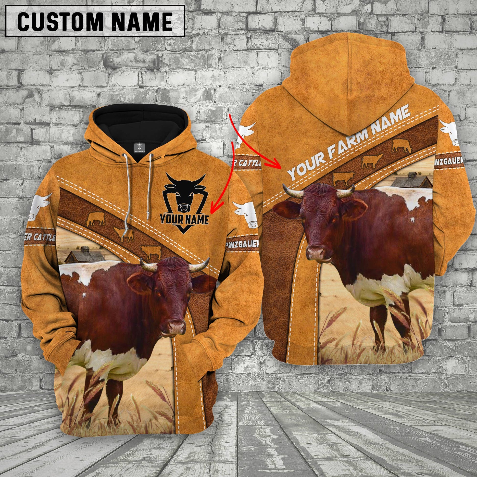 Uni Personalized Name 3D Pinzgauer Cattle Hoodie
