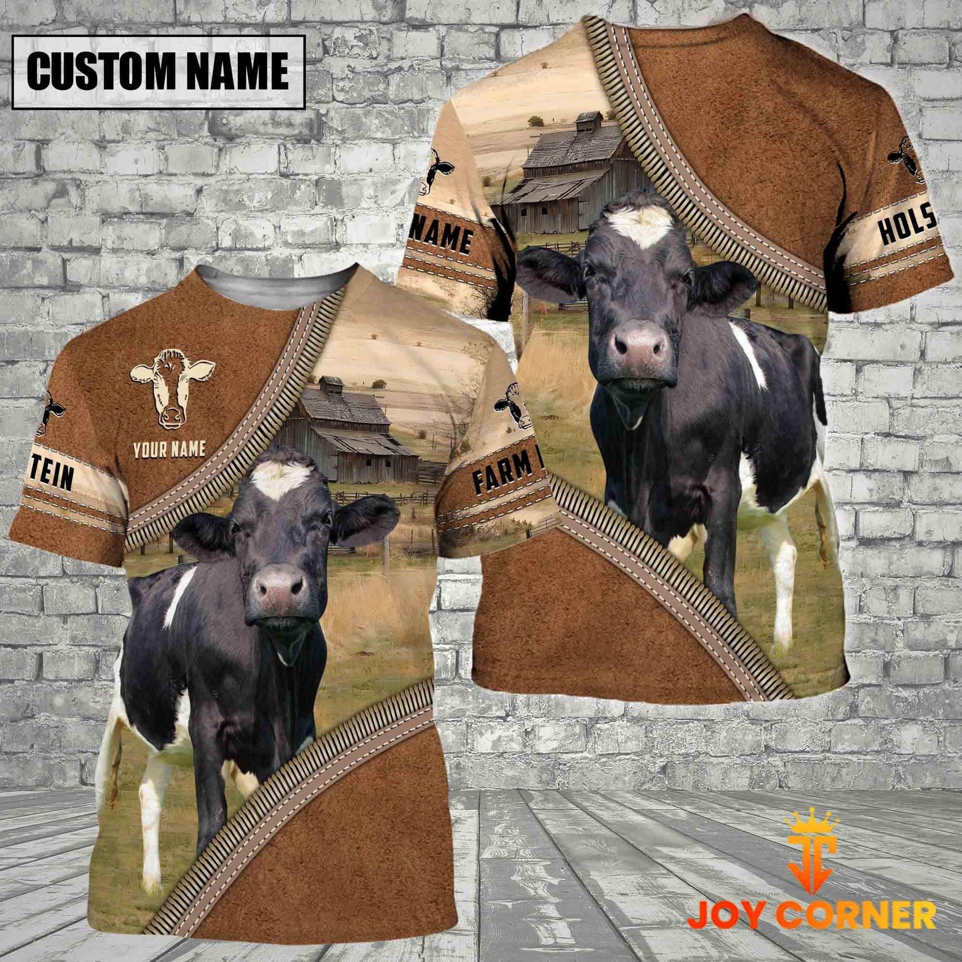 Uni Personalized Name Farm Holstein Cattle Light Brown Hoodie