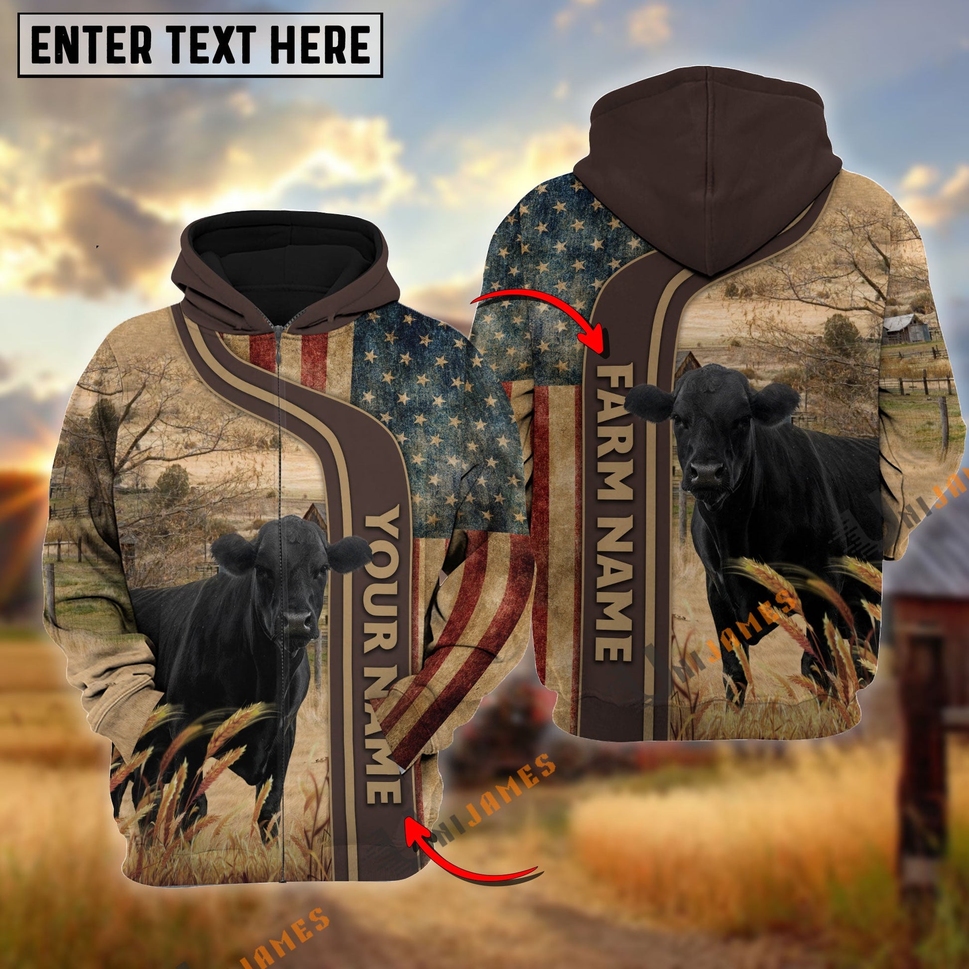 Uni Personalized Name, Farm Name Black Angus US Flag Hoodie