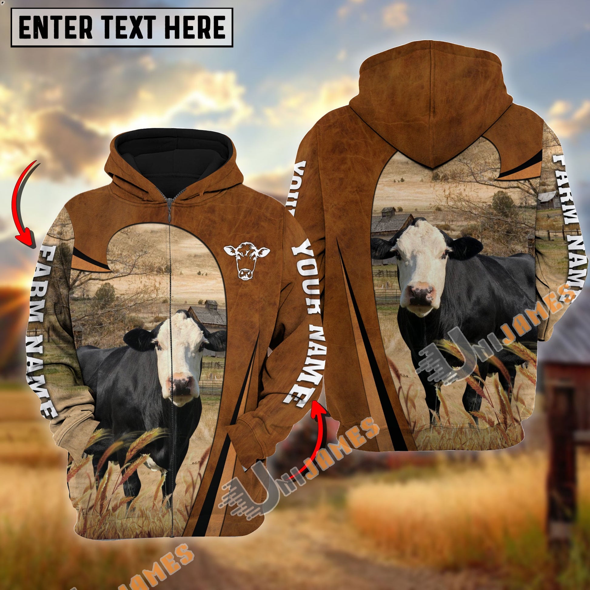 Uni Personalized Name, Farm Name Black Baldy Premium Brown Pattern Hoodie