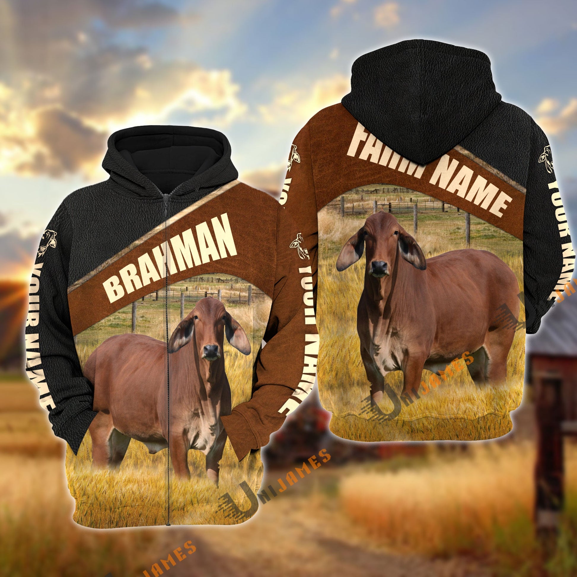 Uni Personalized Name & Farm Name Red Brahman Cattle Hoodie