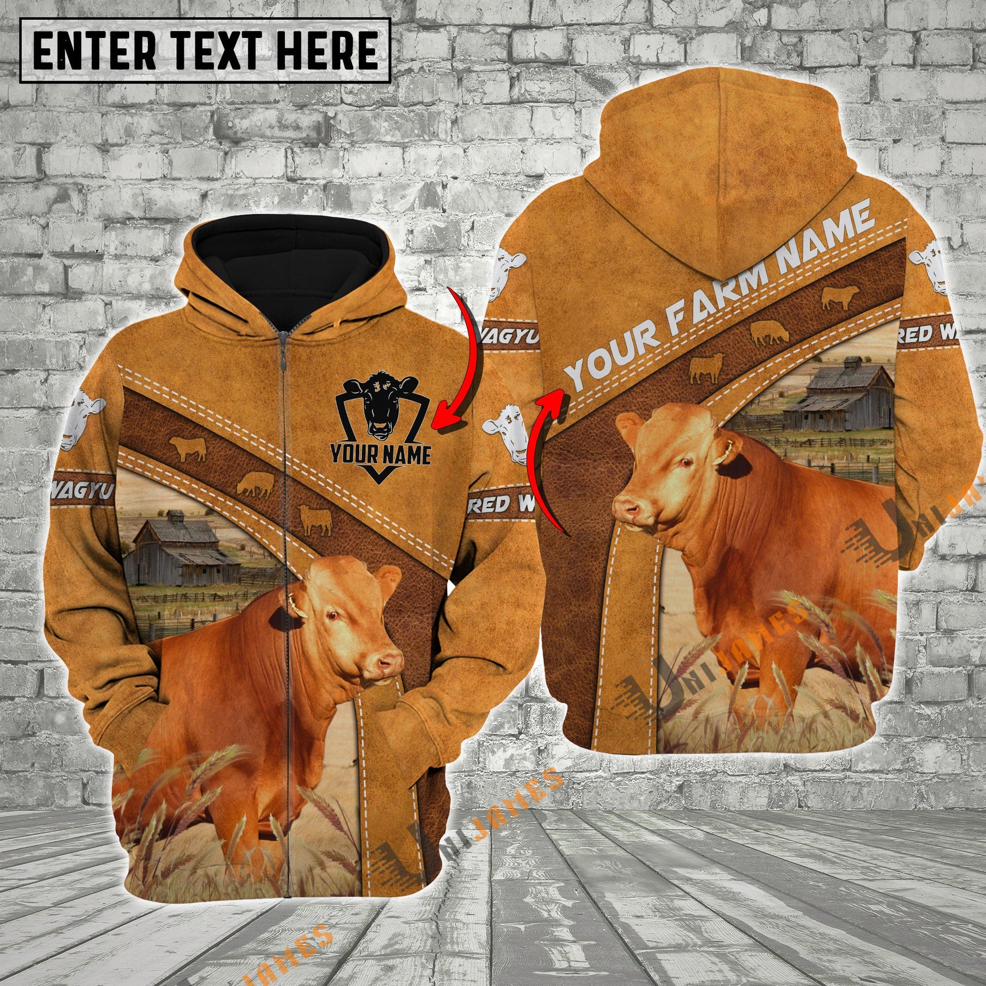 Uni Personalized Name Farm Red Wagyu Cattle Hoodie