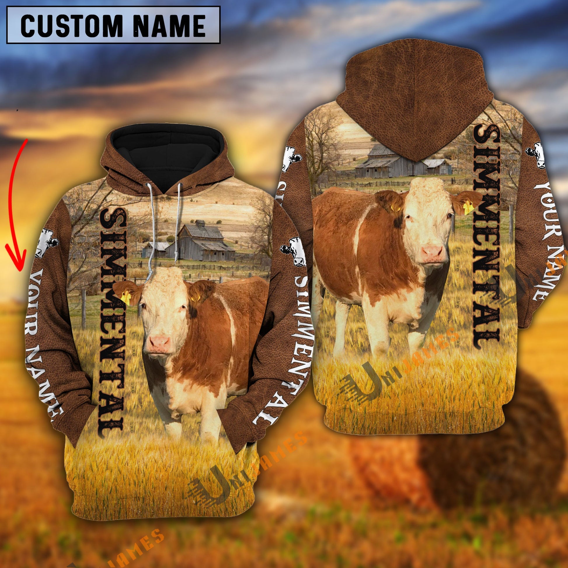 Uni Personalized Name Farm Simmental Brown Hoodie