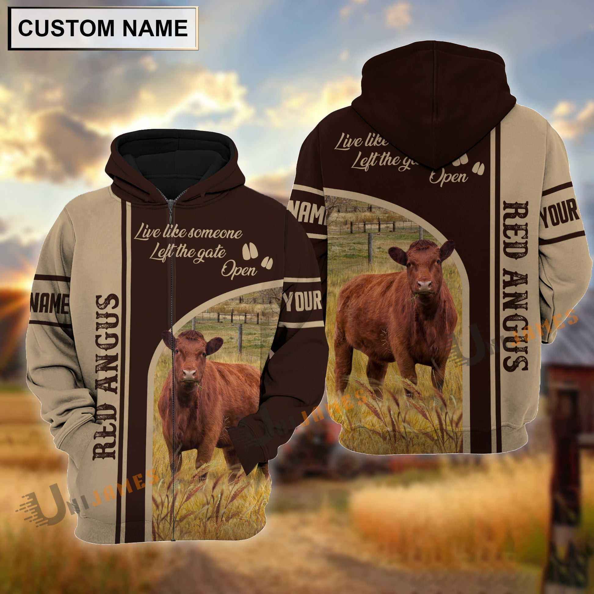 Uni Personalized Name Red Angus Live Like Someone Left The Gate 3D Shirt