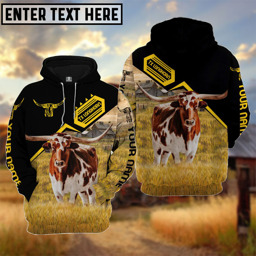 Uni Personalized Name Texas Longhorn Black Yellow Pattern 3D Hoodie