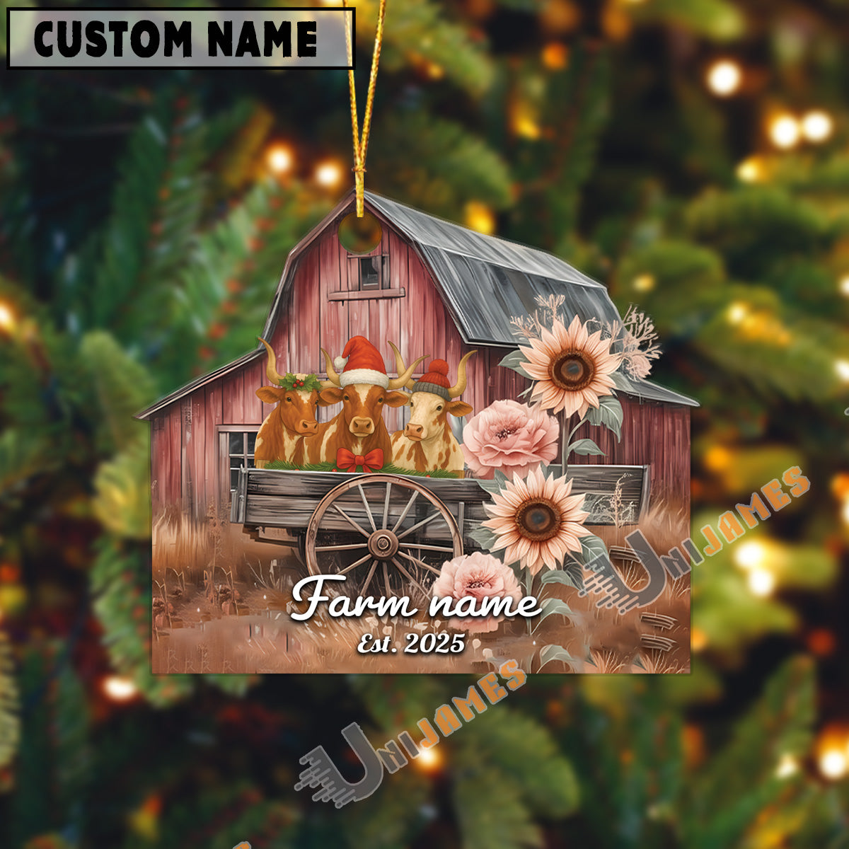 Uni Personalized Rustic Barn Black Angus Christmas Acrylic Ornament
