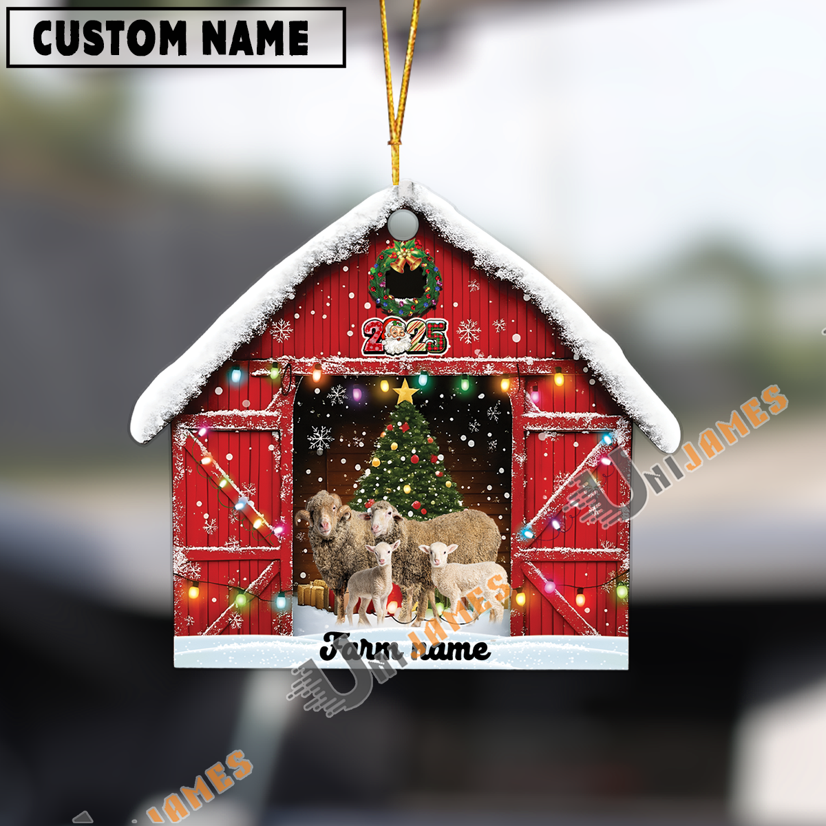 Uni Personalized Sheep Christmas Barn Ornament – Custom Farm Name 2025