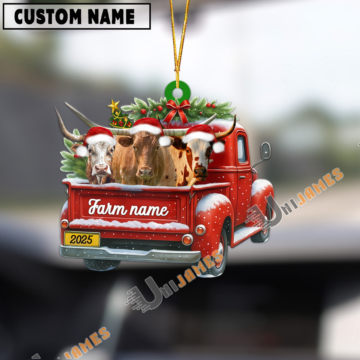Uni Personalized Texas Longhorn Christmas Farm Truck Custom Shape Acrylic Ornament