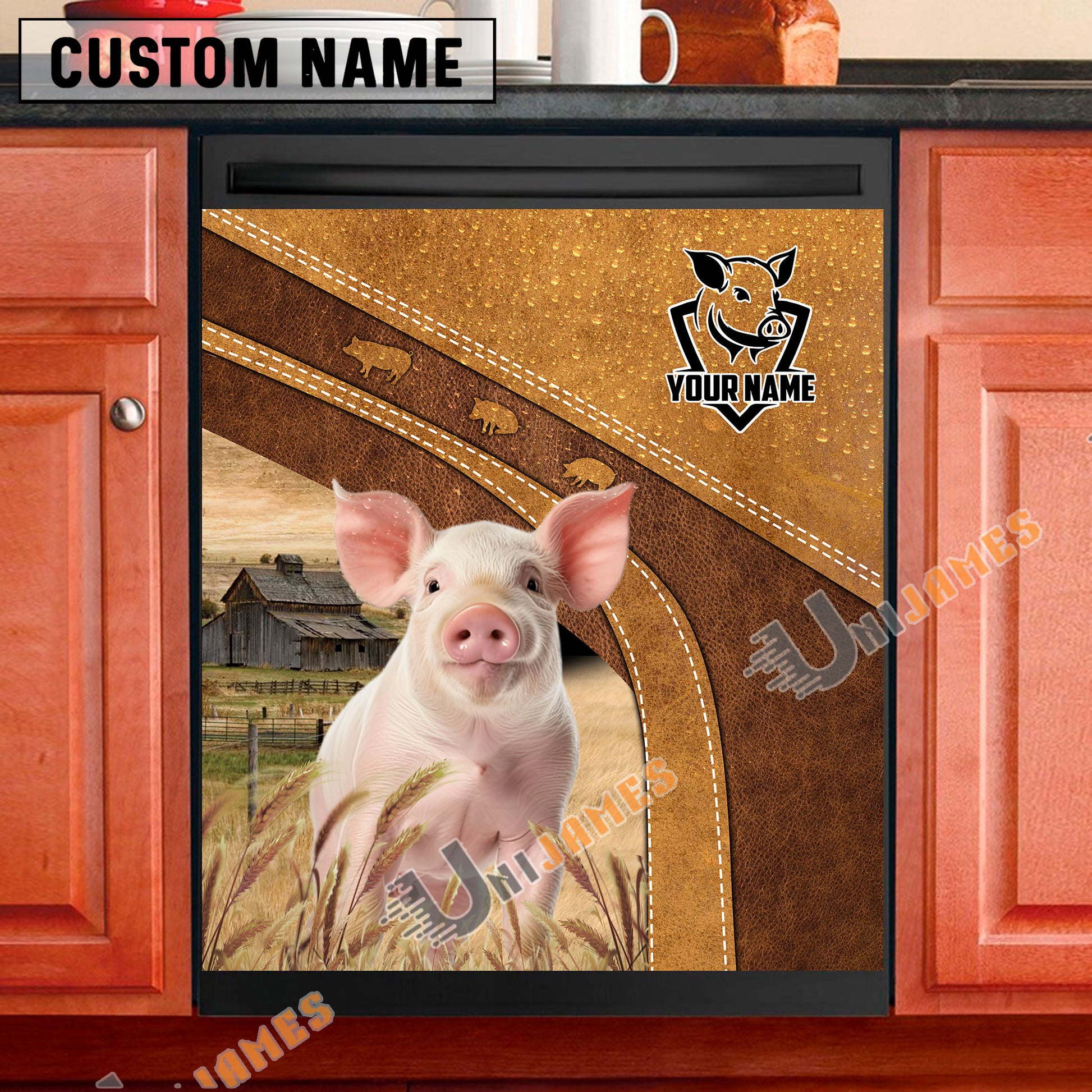 Uni Pig Brown Custom Name Dishwasher Door Cover