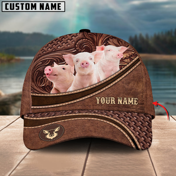 Uni Pig Personalized Name Brown Carving Leather Pattern 3D Classic Cap