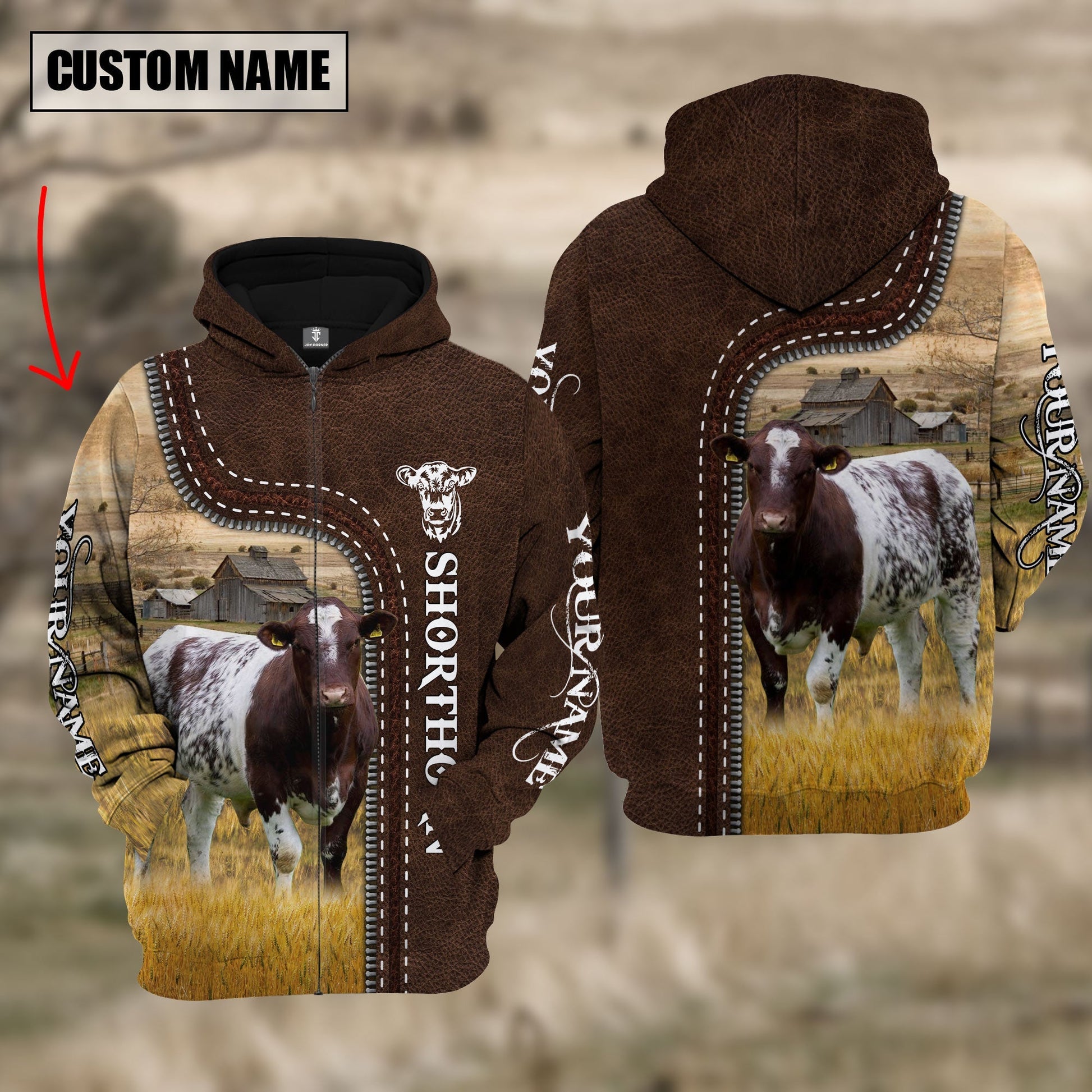 Uni Shorthorn Farming Leather Pattern Personalized 3D Hoodie