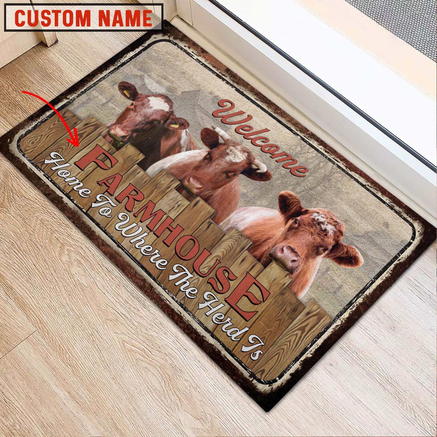 Uni Shorthorn Custom Name - Home To Where The Herd Is FarmHouse Doormat