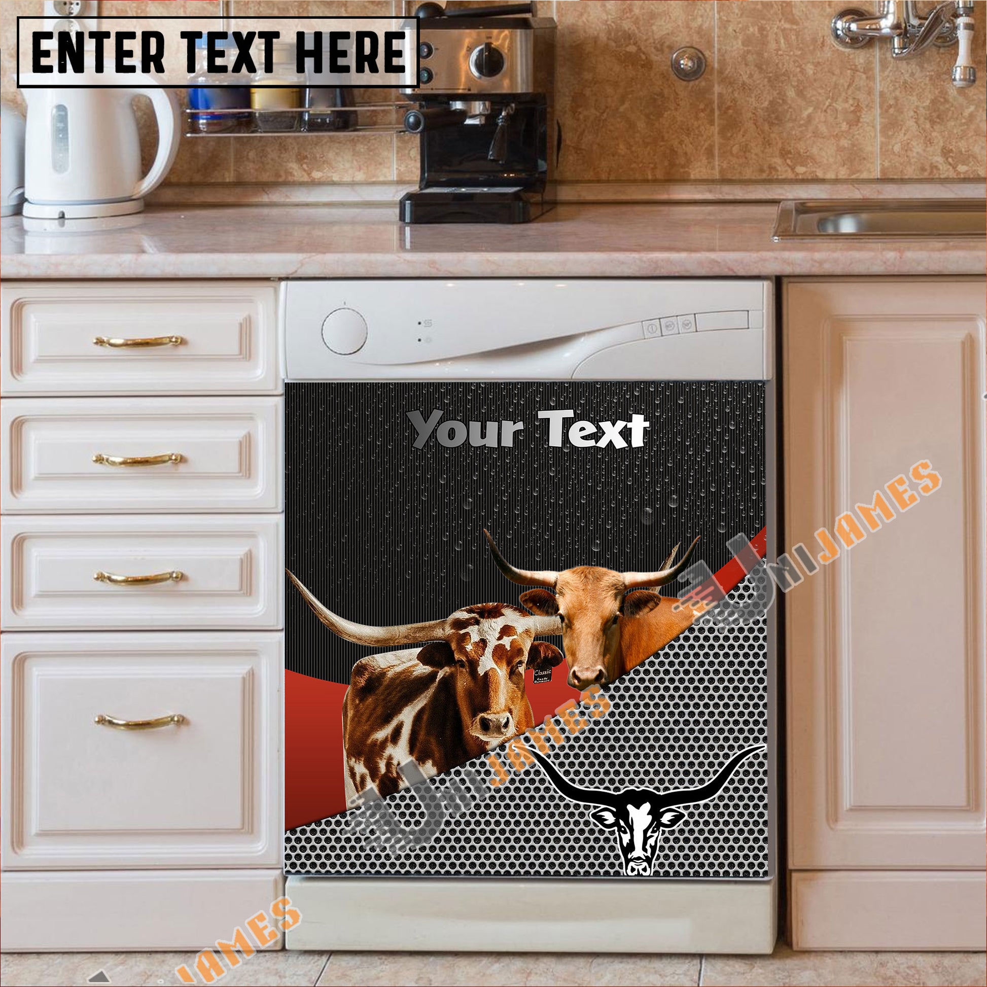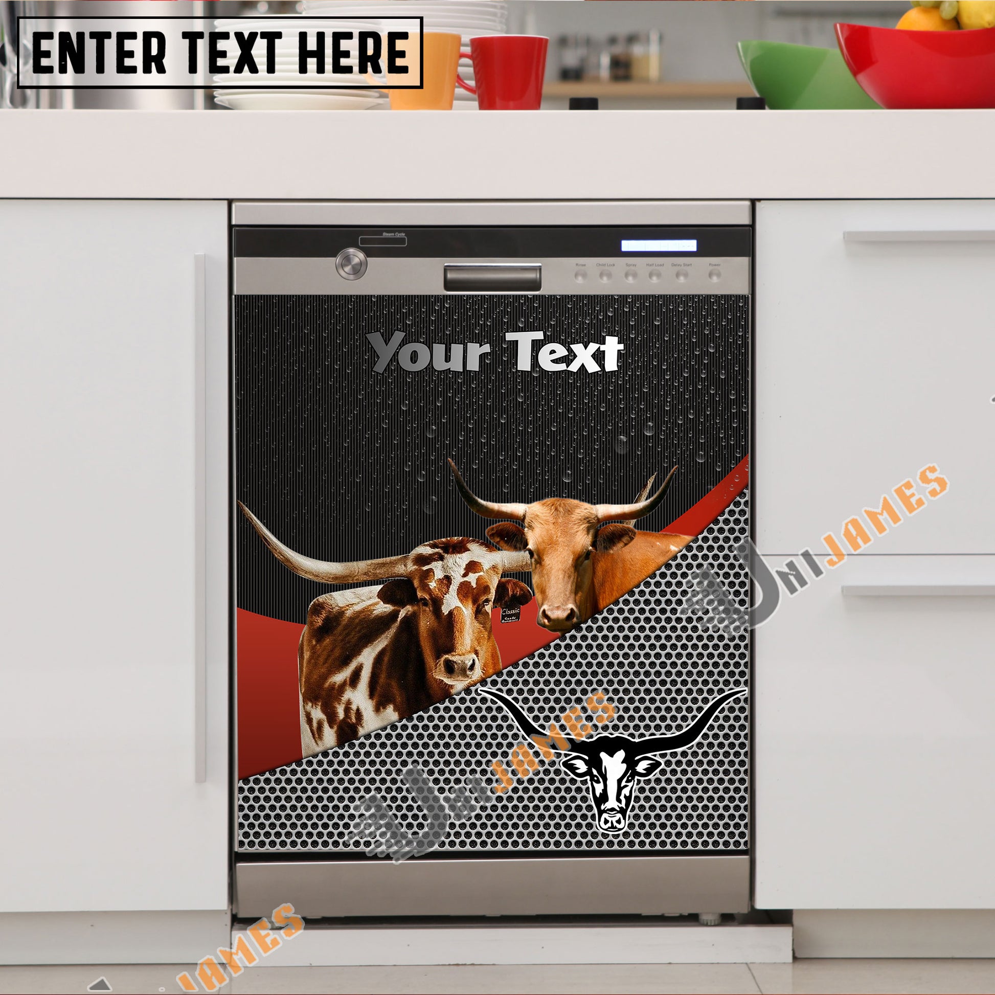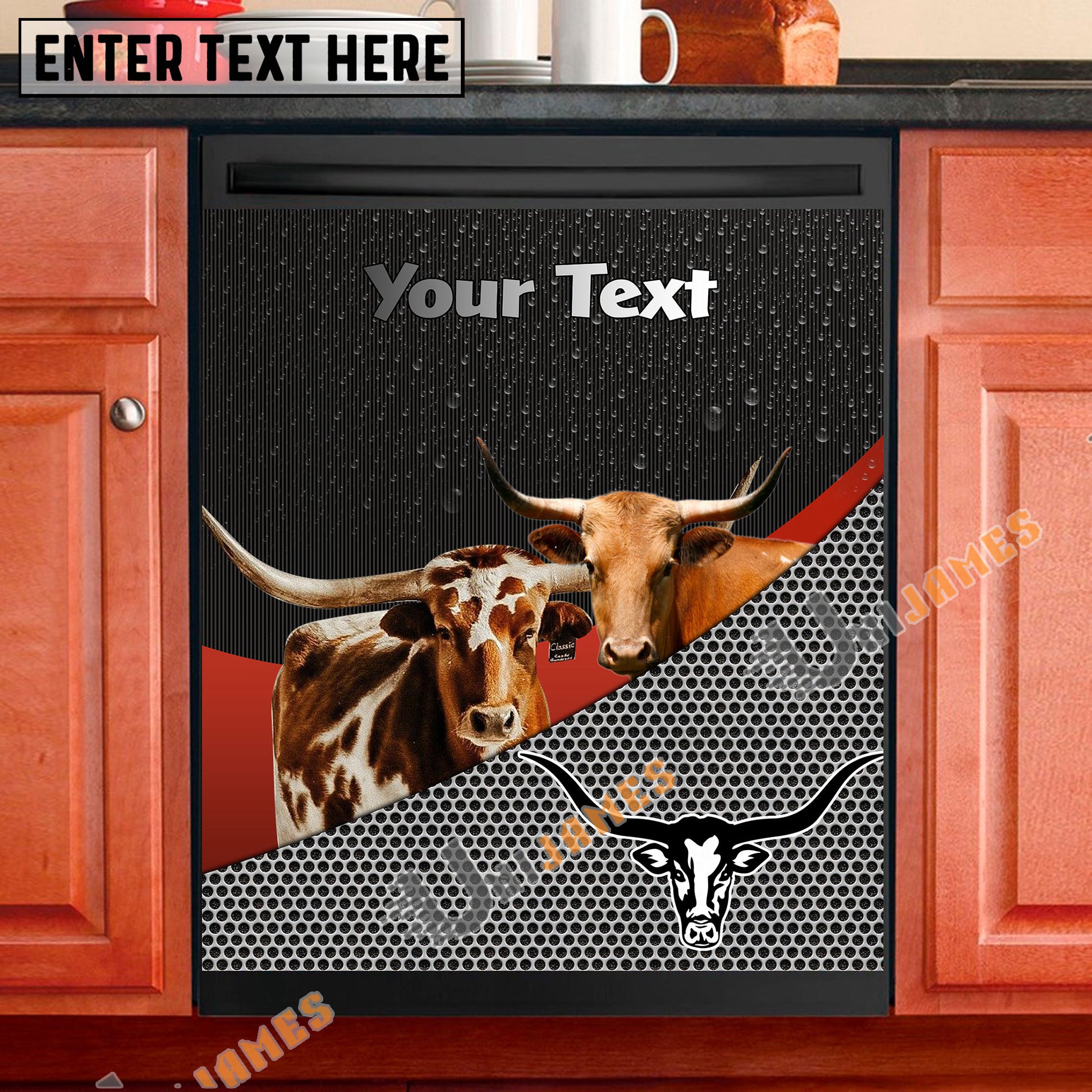 Uni Texas Longhorn Cattle Metal Pattern Custom Name Dishwasher Door Cover