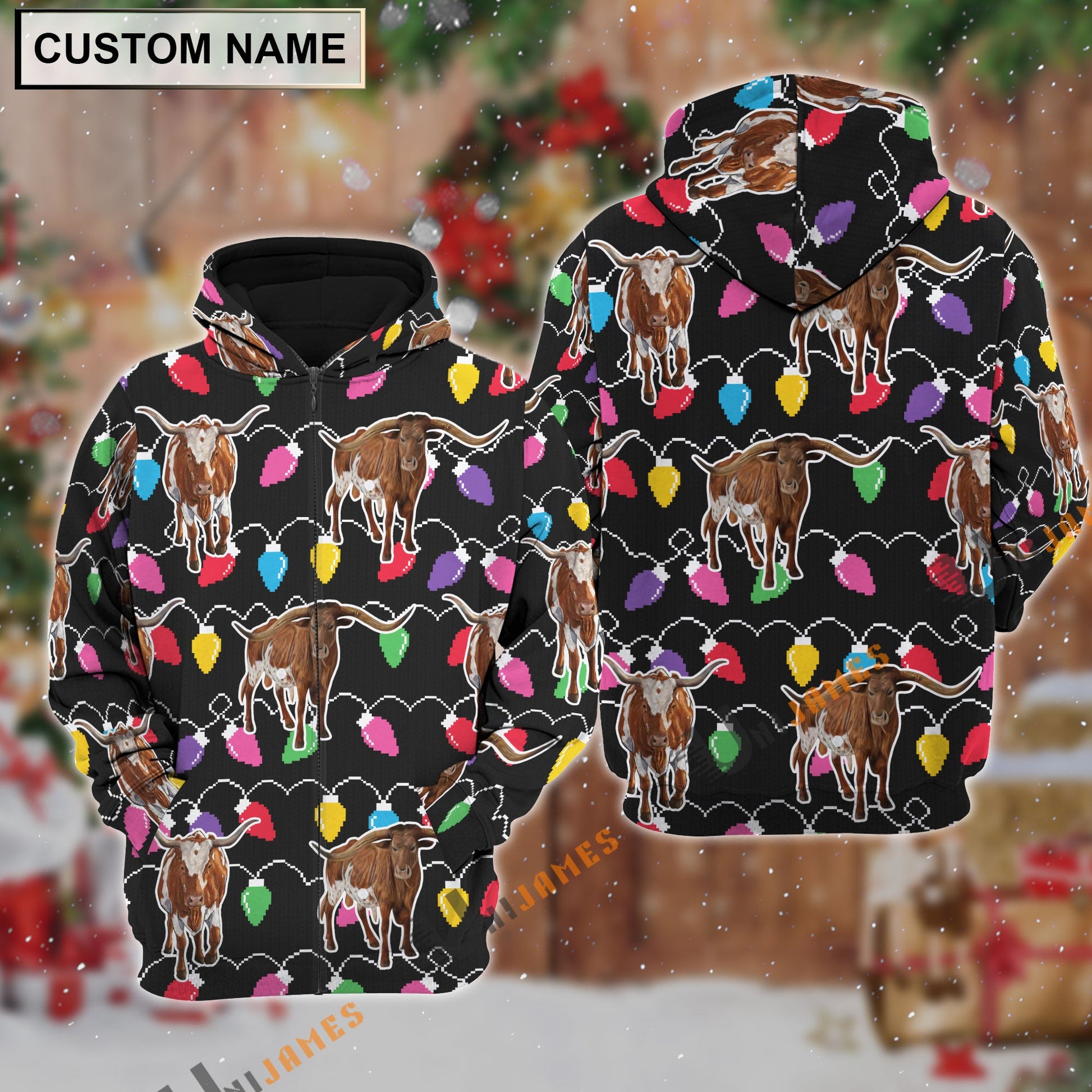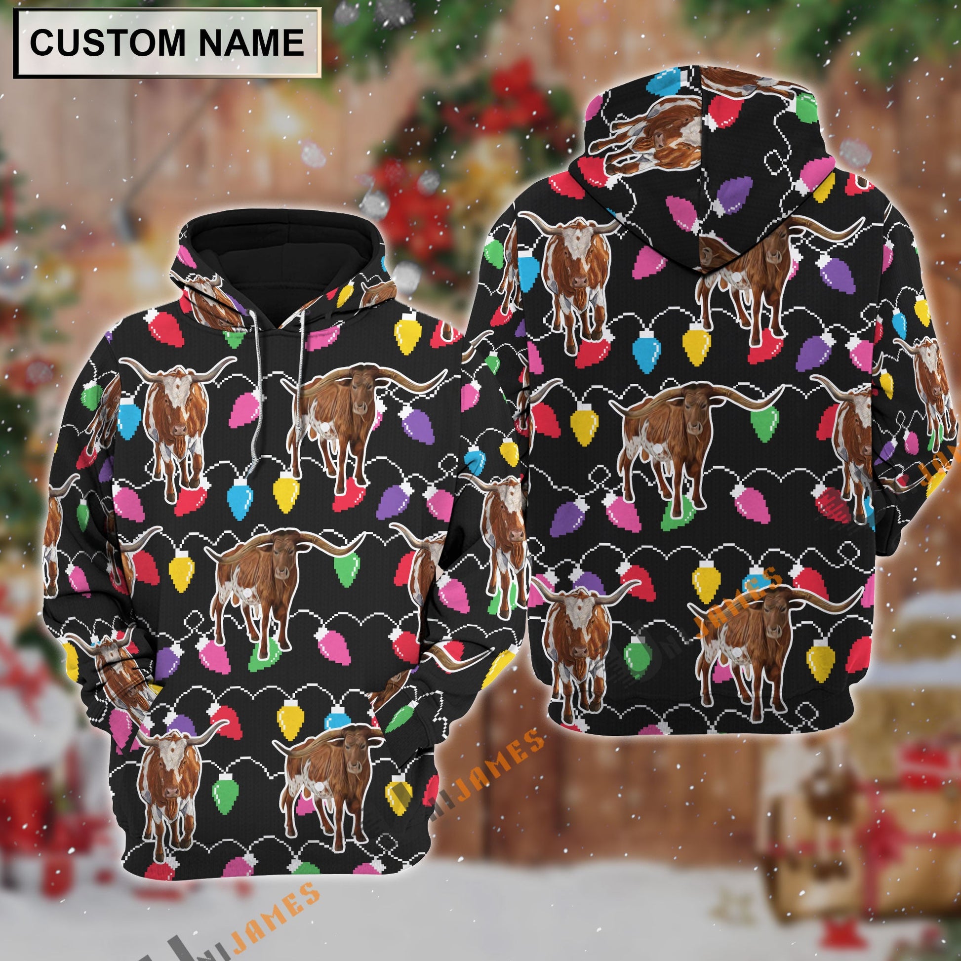Uni Texas Longhorn Christmas Led Light Personalized Name 3D Hoodie