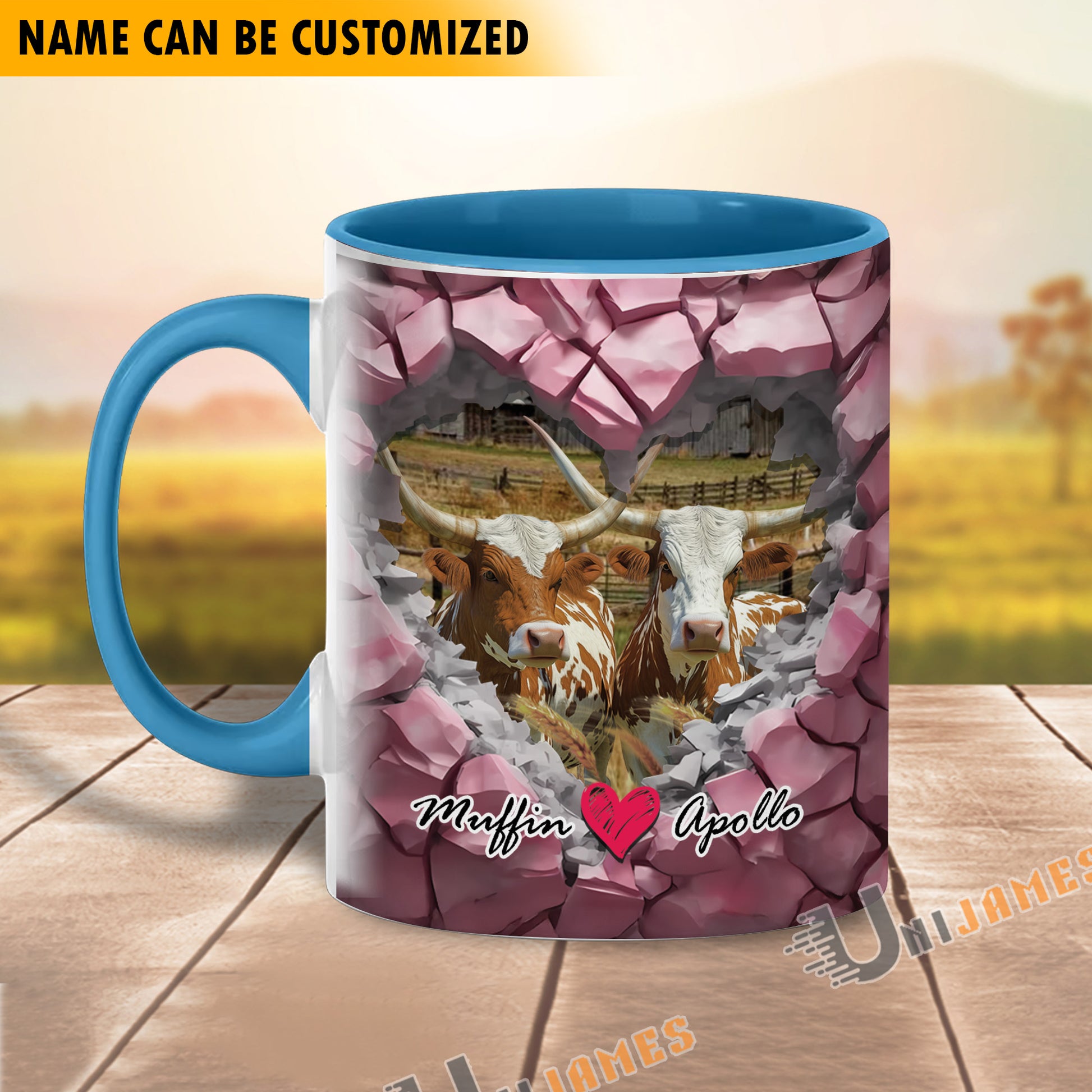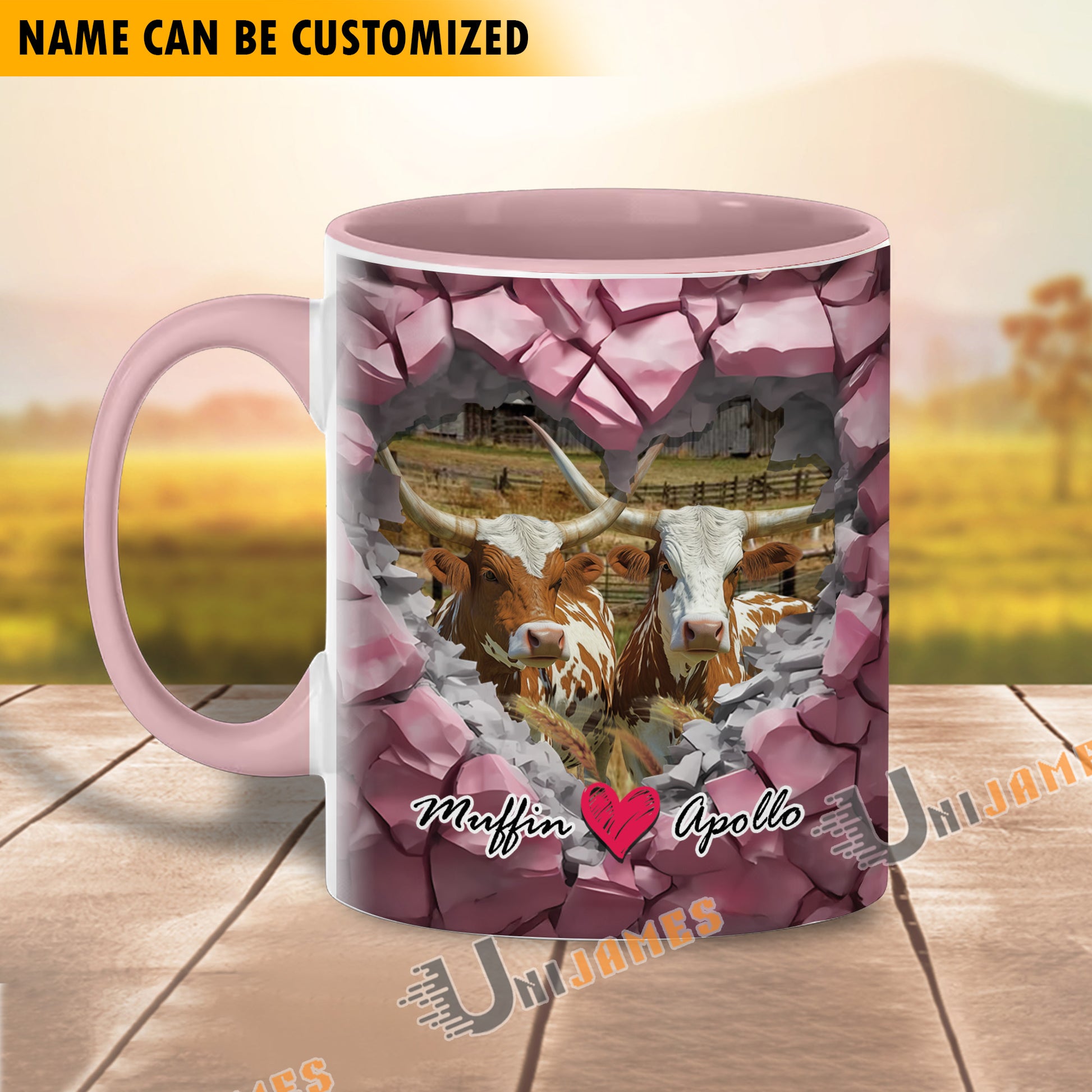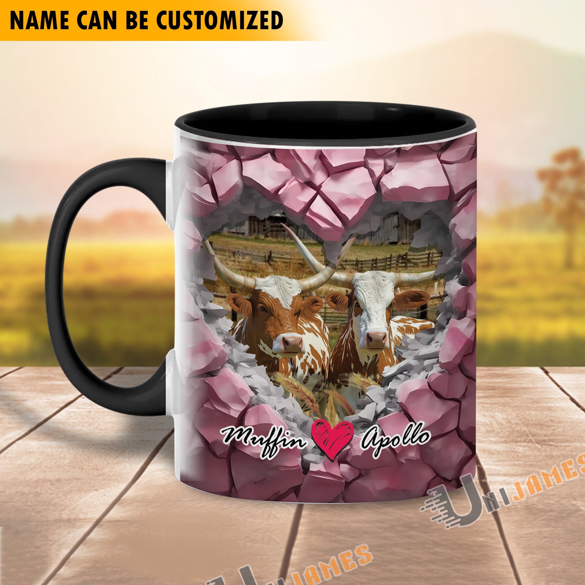 Uni Texas Longhorn Couple Personalized Name Two Tone Mug