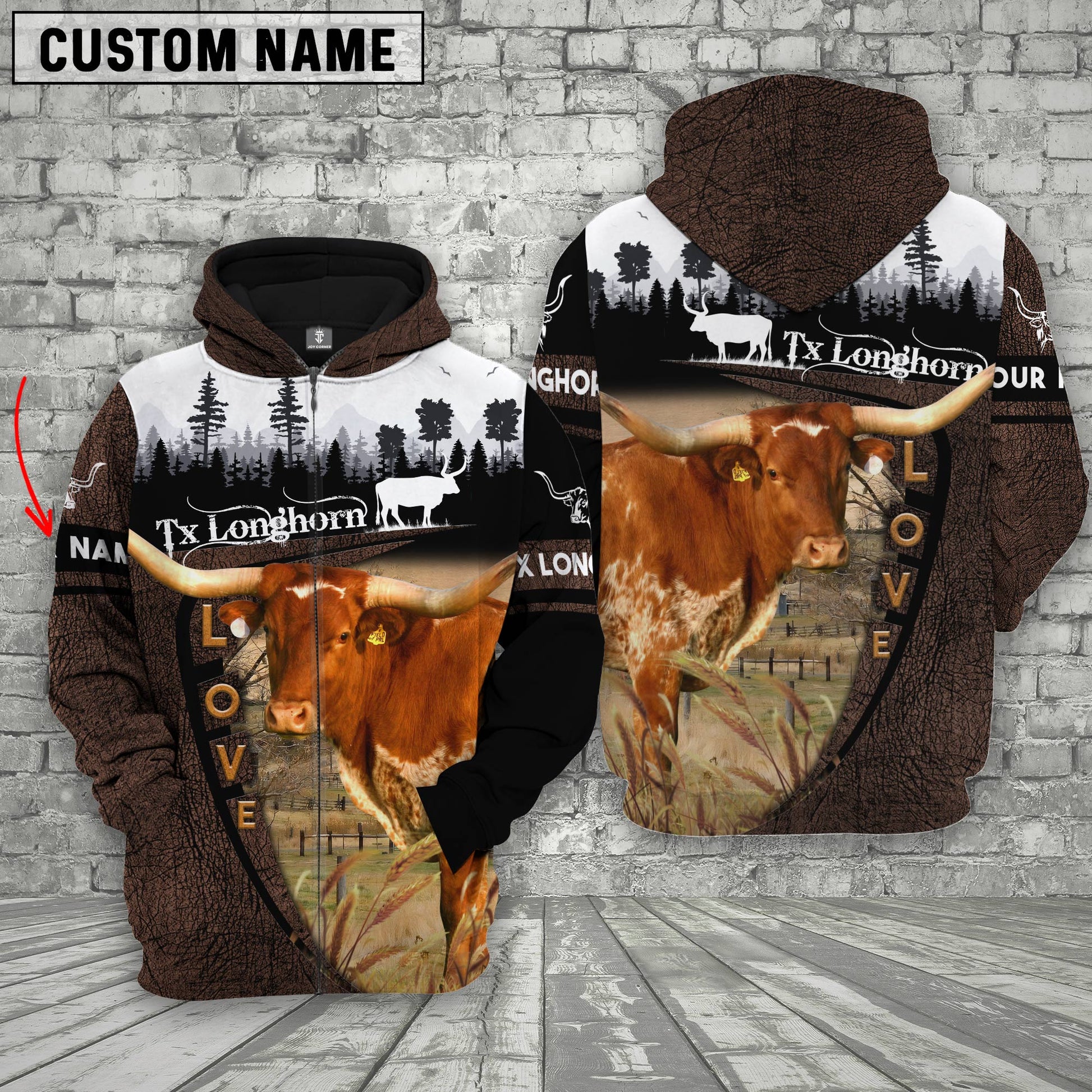 Uni Texas Longhorn On Farms Custom Name Printed 3D Wooden Forest Hoodie