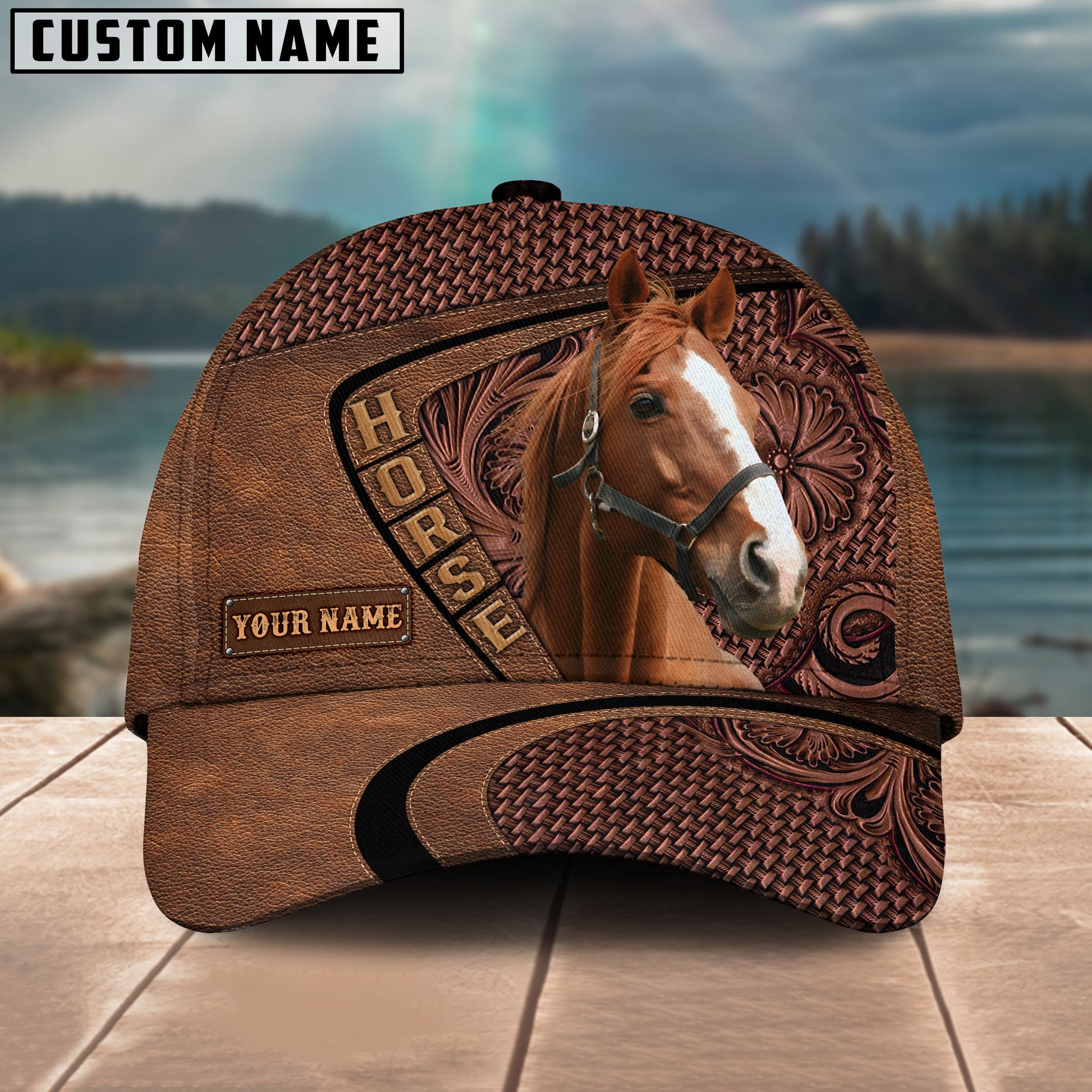 Uni Thoroughbred Horse Carving Leather Pattern Personalized Name Cap