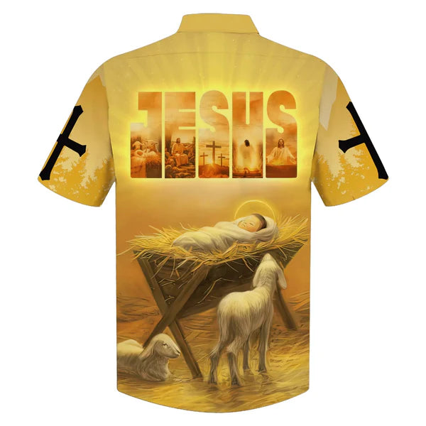 UniJames Baby Jesus In A Manger Hawaiian Shirts - Christian Hawaiian Shirt - Jesus Hawaiian Shirts