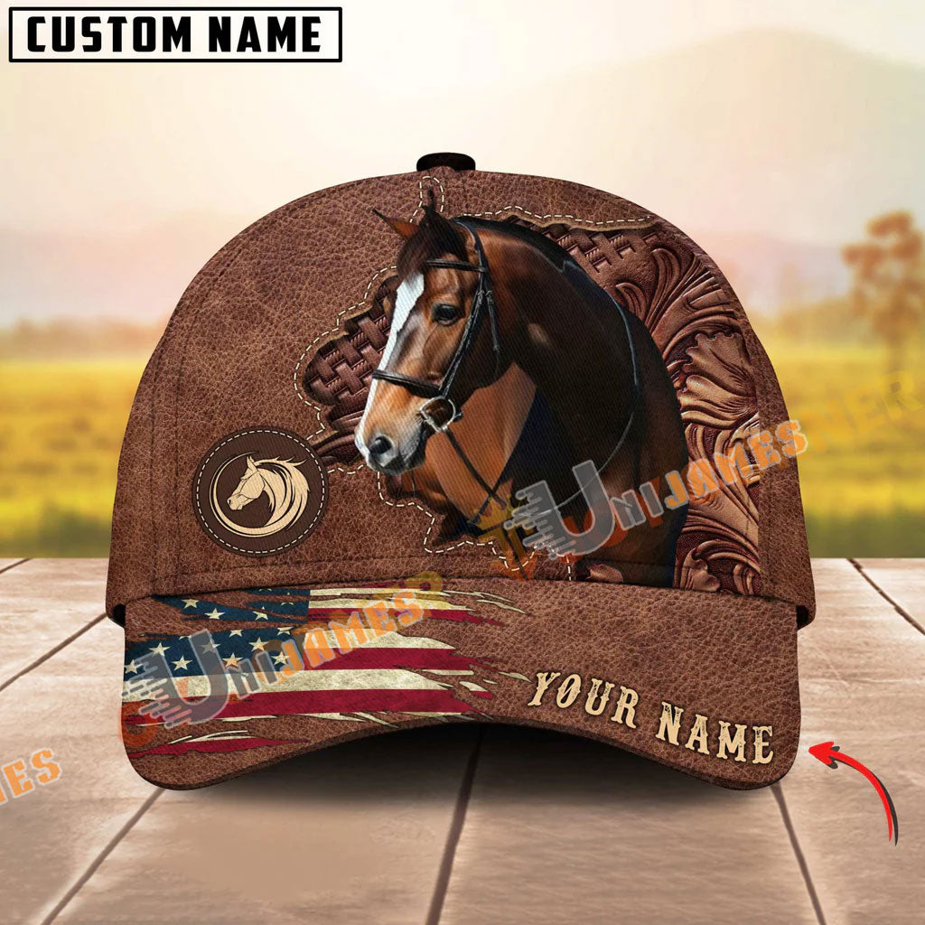Unijames Cattle Brown Carving American Flag Personalized Name 3D Cap
