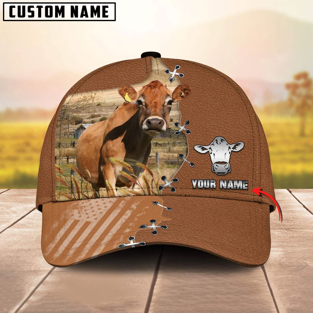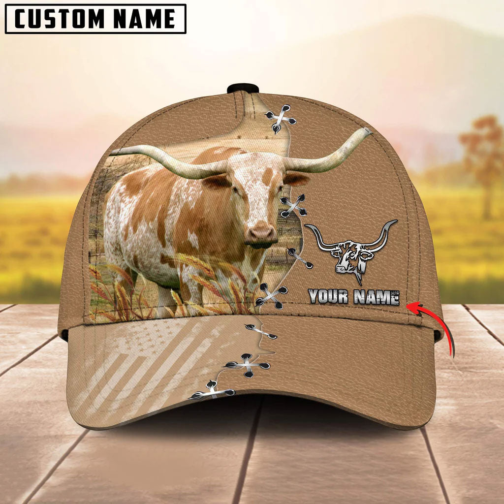 Unijames Cattle Flag Leather Pattern Personalized Name Cap
