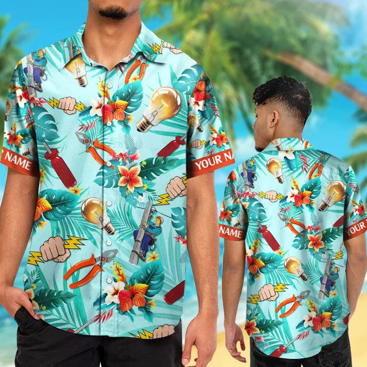 UniJames Custom Name Electrician Colorful Hawaiian Shirts for Men & Women