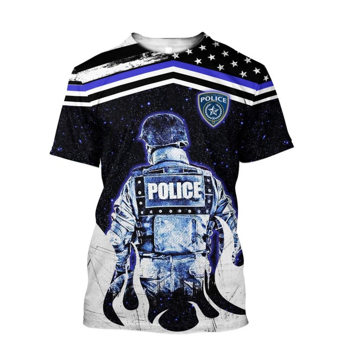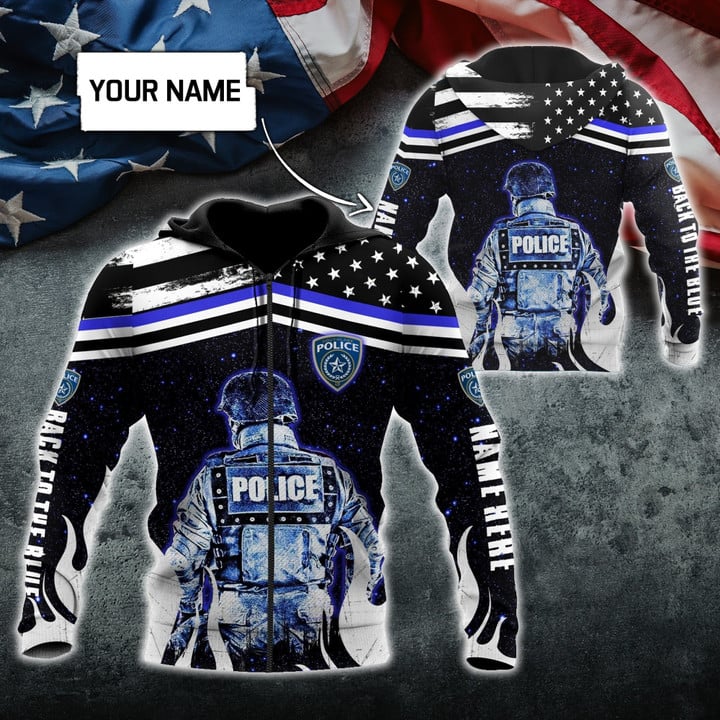 UniJames Customize Name Police 3D All Over Printed Unisex Shirts Back To The Blue