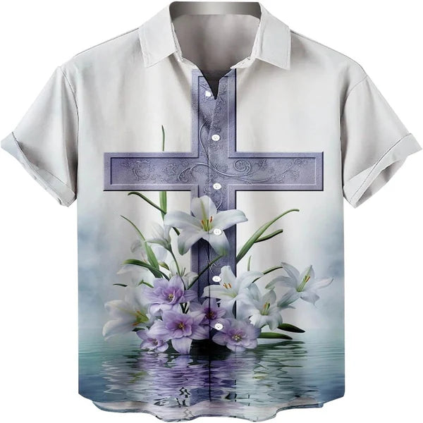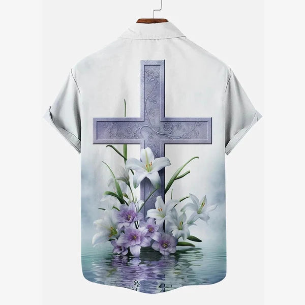 UniJames Easter Cross Lily Christian Hawaiian Shirt - Hawaiian Beach Shirts for Men Women