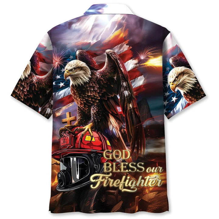 UniJames God Bless Our Firefighter Hawaiian Shirt