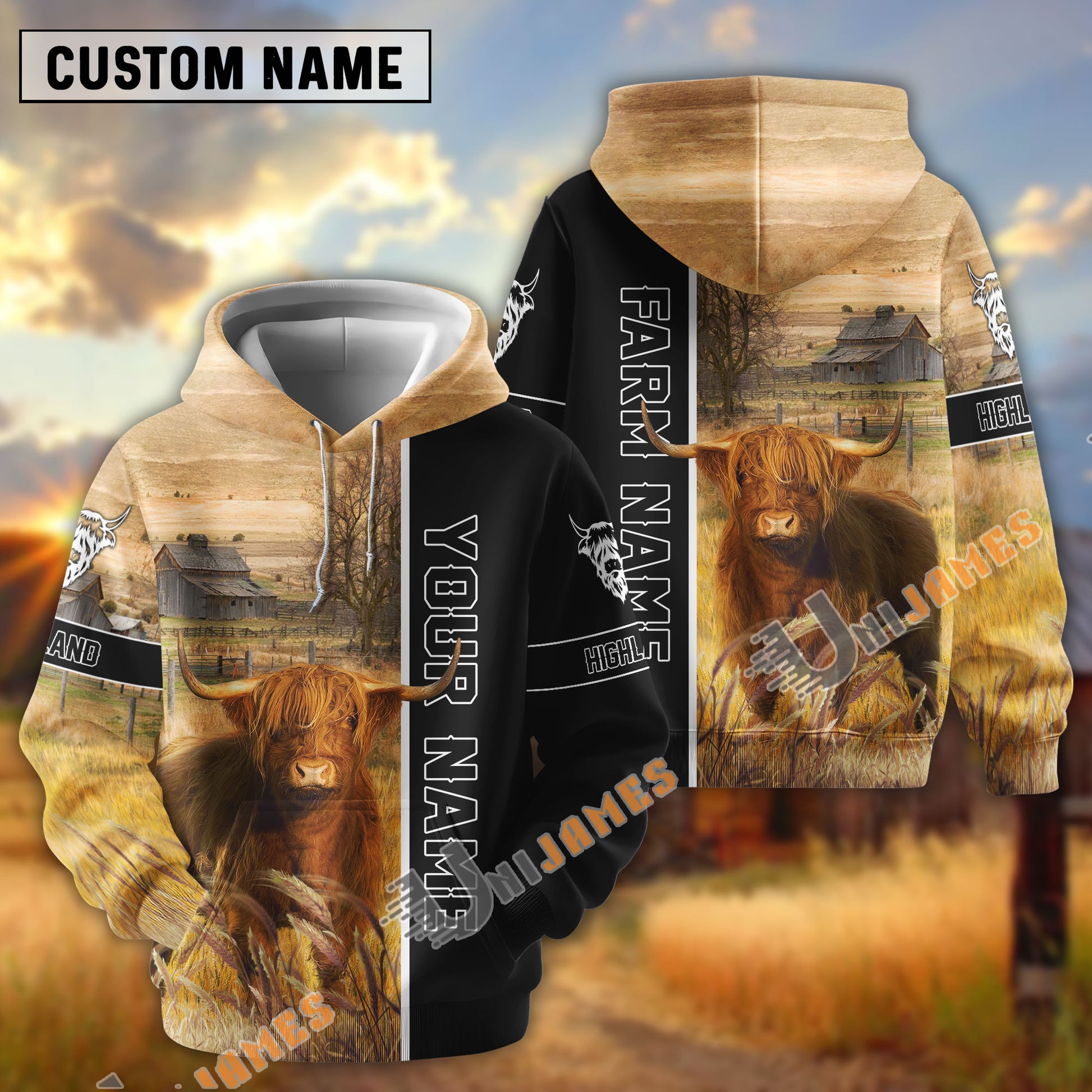 UniJames Half Black & Farm Highland Cattle Personalized Hoodie
