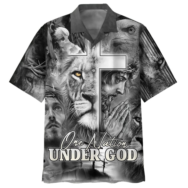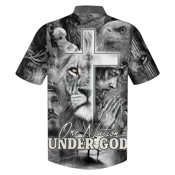 UniJames Jesus And The Lion Of Judah Hawaiian Shirt For Men - One Nation Under God Hawaiian Shirts - Christian Hawaiian Shirt