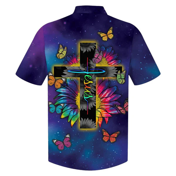 UniJames Jesus Butterfly Sunflower Hawaiian Shirts - Christian Hawaiian Shirt - Jesus Hawaiian Shirts